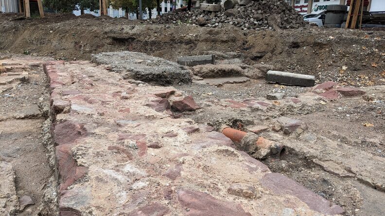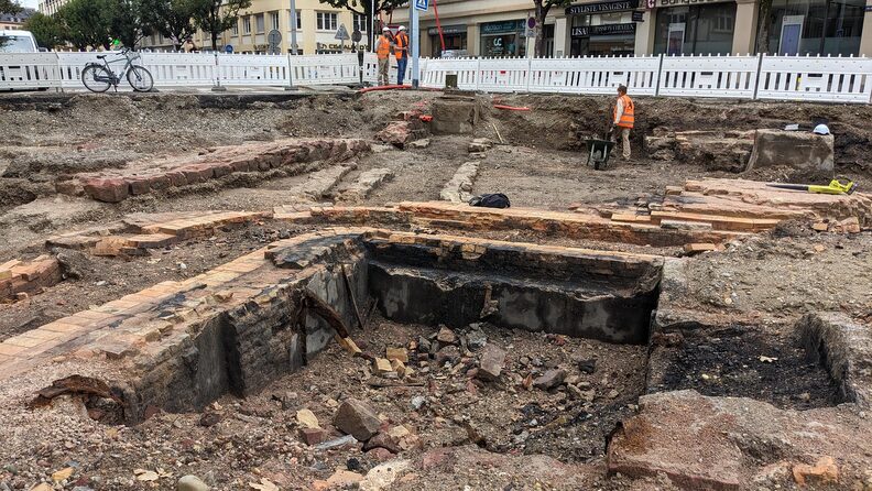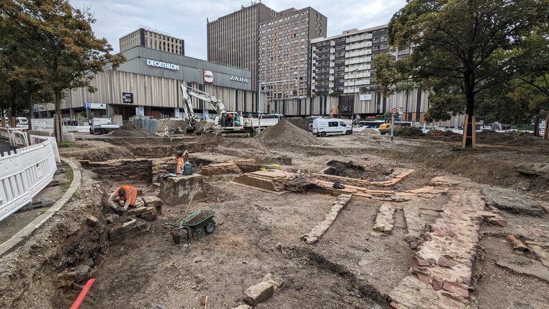 Ces aménagements imposent de creuser jusqu’à près de deux mètres sous le niveau du sol, ce qui va détruire des constructions anciennes. « À cet emplacement se situait l’usine de gaz de Strasbourg », indique Florent Minot d’Archéologie Alsace :