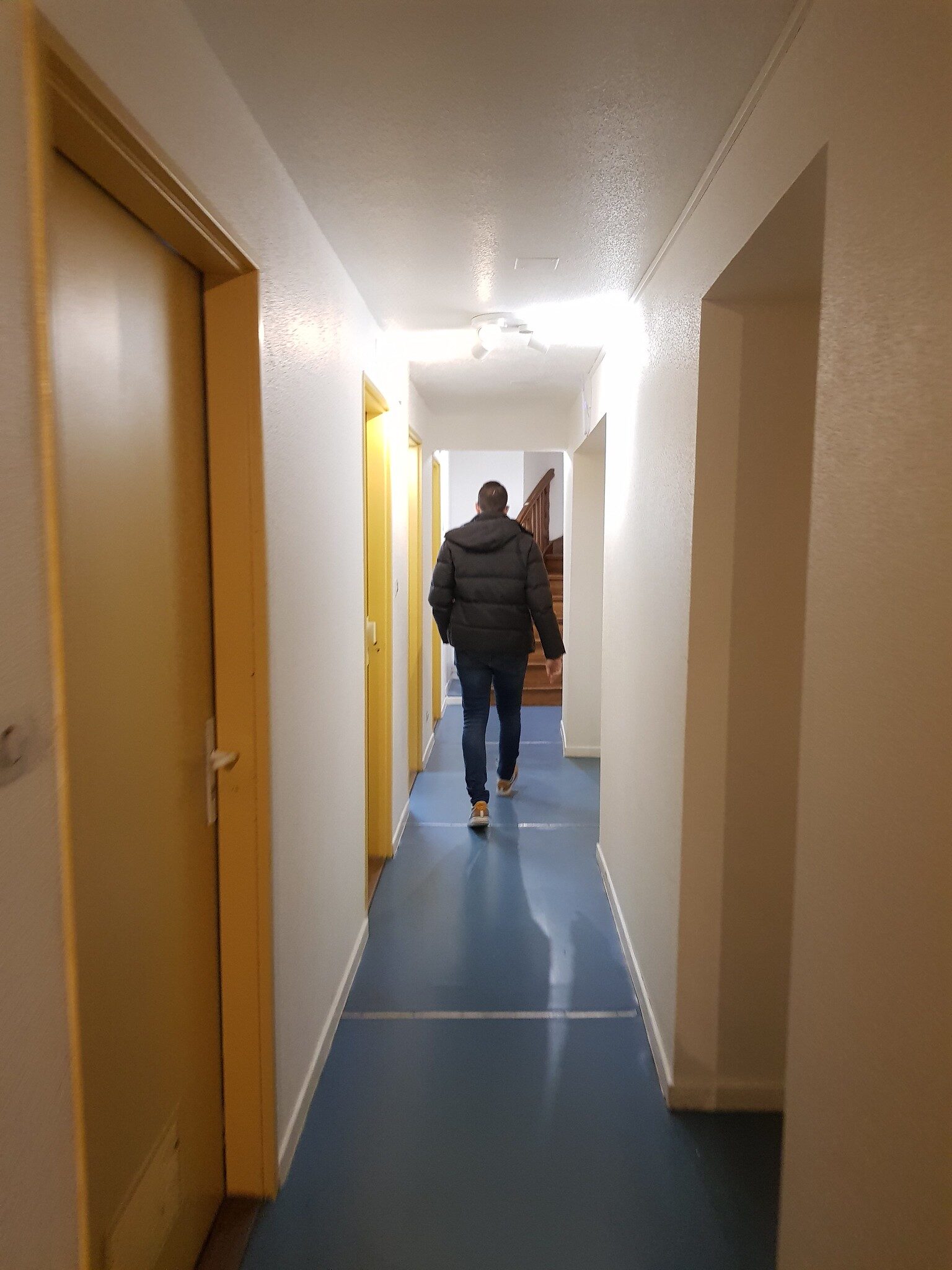 Dans le couloir aux murs blancs, les portes jaunes des chambres en enfilade sont toutes fermées. On entend du rap en passant devant l’une d’entre elles. Une musique de jeux vidéos devant une autre. « Mustapha adore jouer », raconte en souriant Yasmine Khouidmi, travailleuse sociale au Réseau d’accueil solidaire depuis septembre 2020. Elle frappe doucement à la porte. « On peut rentrer ? » La chambre s’ouvre doucement sur un jeune homme au sourire éclatant.