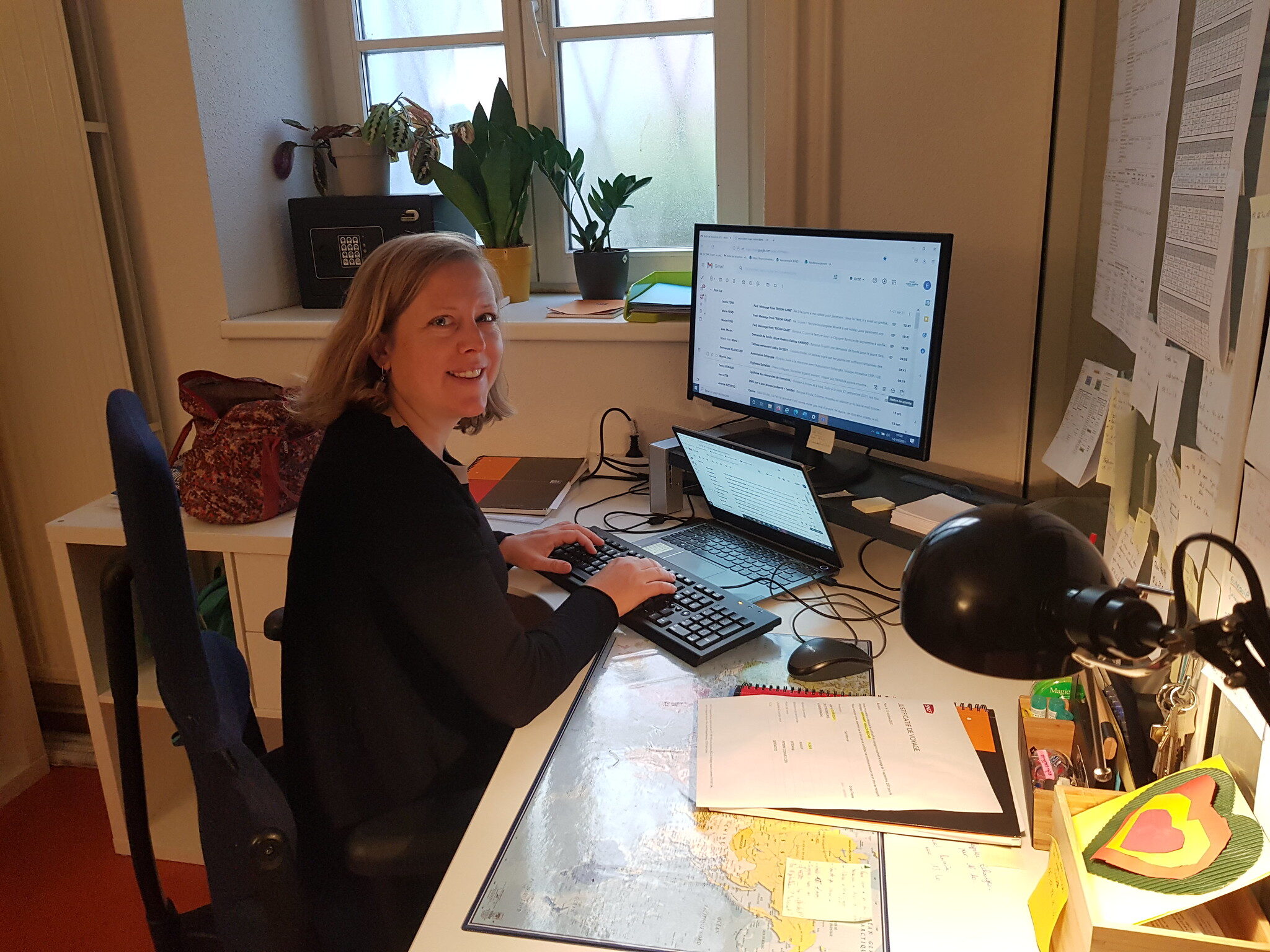 Au bout du couloir où dorment les jeunes, un petit escalier en colimaçon monte au « bureau », sous les toits. C’est ici que travaillent les éducateurs, mais aussi l’art-thérapeute de la structure. Il y a une petite cuisine, une salle avec une grande table, un canapé et des photos de voyage au mur. « Parfois ils viennent juste se poser ici, pour être près de nous. Ils ont besoin d’une présence, sans forcément parler », raconte Yasmine Khouidmi, une tasse de café fumante entre les mains.