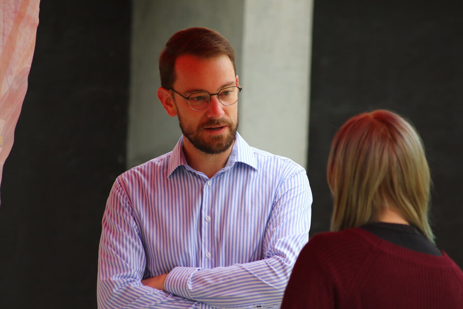 Rouge pétant. Dans les allées bétonnées du campus universitaire de Strasbourg, la tonnelle de la France insoumise se distingue de loin avec son rouge criard, son fouillis d’affiches et ses slogans. Autour d’une table garnie de cakes au chocolat, café et jus de pomme, plusieurs militants scrutent patiemment l’arrivée des premiers étudiants, attendus pour la pré-rentrée universitaire. À leur côté, le député de la deuxième circonscription, l’insoumis Emmanuel Fernandes.