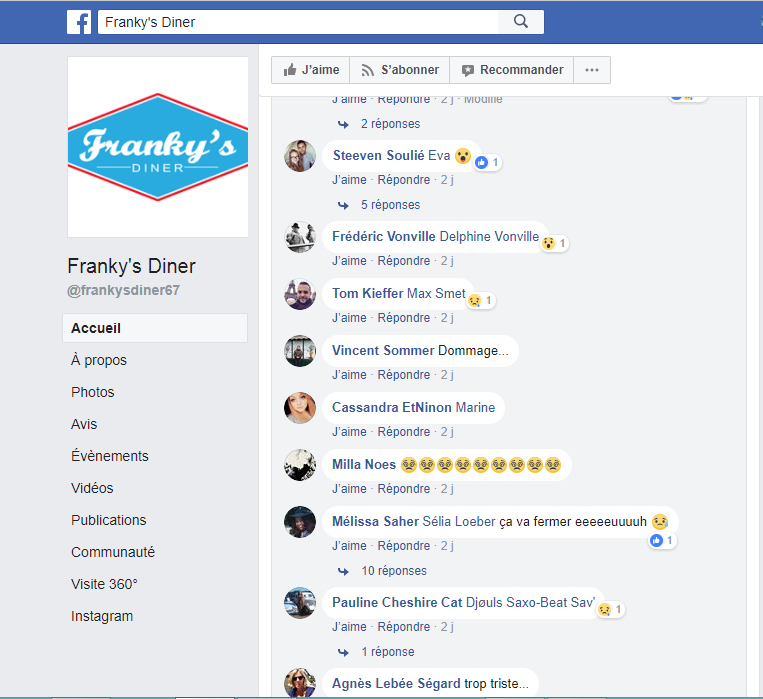 Toujours selon Franck Meunier, ce n’est pas un manque de clientèle qui aurait motivé la fermeture des deux restaurants, mais un simple « arbitrage ». Franck Meunier a cédé les fonds de commerce mais est resté propriétaire de la marque « Franky’s Diner. » Sur Facebook en tout cas, la surprise était totale parmi les habitués des restaurants :