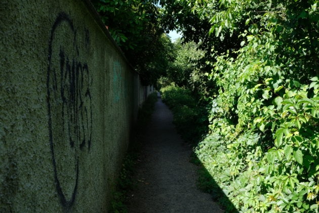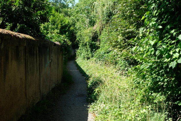 Le sentier situé entre la rue de l’Oberelsau et l’Ill est difficilement accessible aux véhicules.
