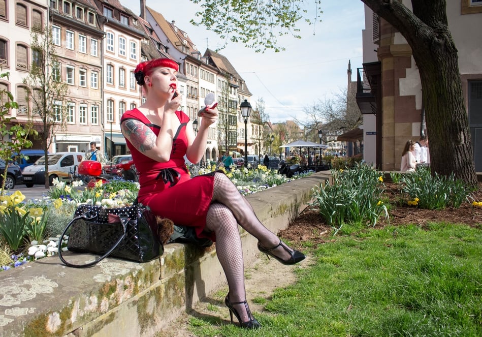 Pin-up et burlesque ne vont pas toujours de pair. Être une pin-up, c’est avant tout un look, celui de la femme fatale des années 50 : rouge à lèvre, cheveux parfaitement travaillés, robe et talons. Mais Coco das Vegas, Lemm Rollicking, Luna Moka et Ruby Schatzi, les quatre Pin-up d’Alsace, oscillent entre burlesque et pin-up. Tant et si bien qu’à Strasbourg, les deux semblent intimement liées. Pourtant, même parmi les filles, certaines se sentent plus effeuilleuses que pin-up.