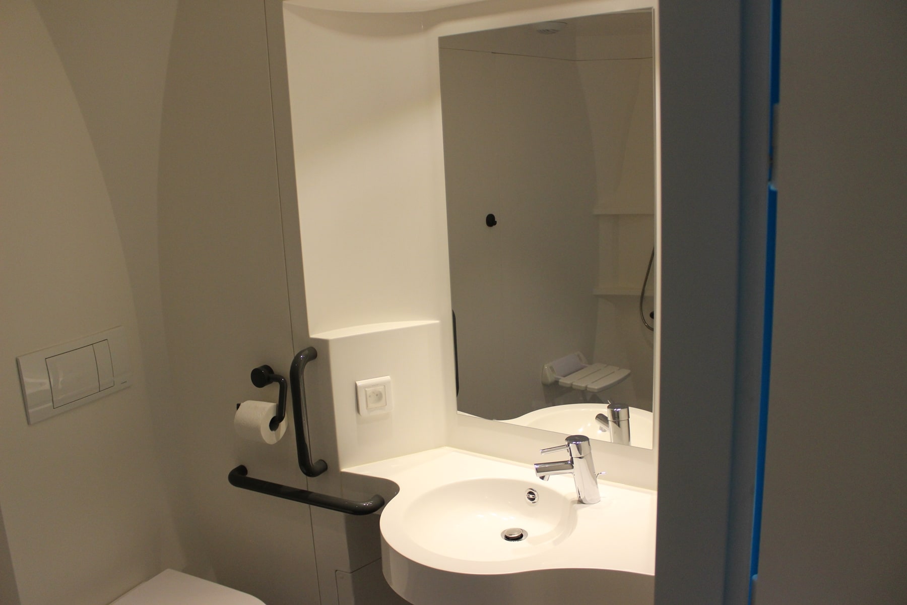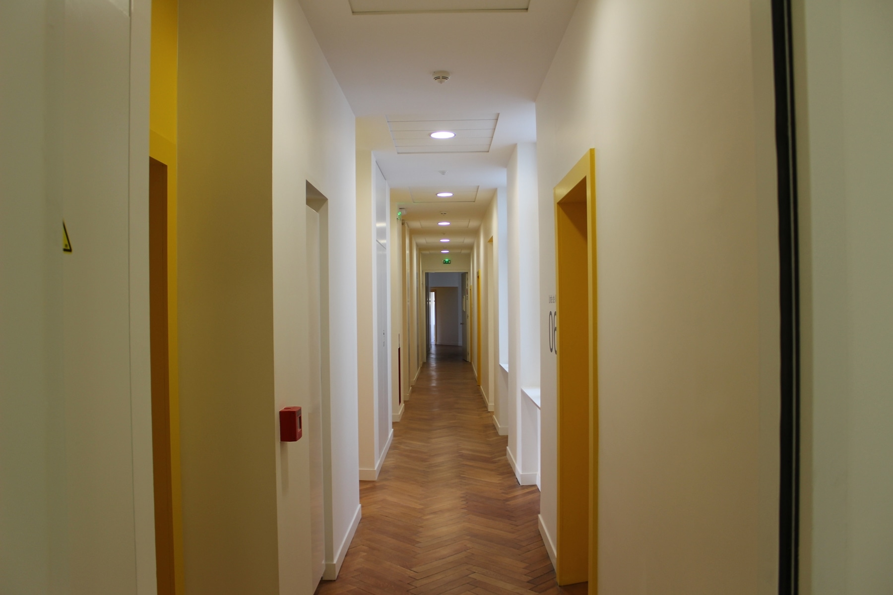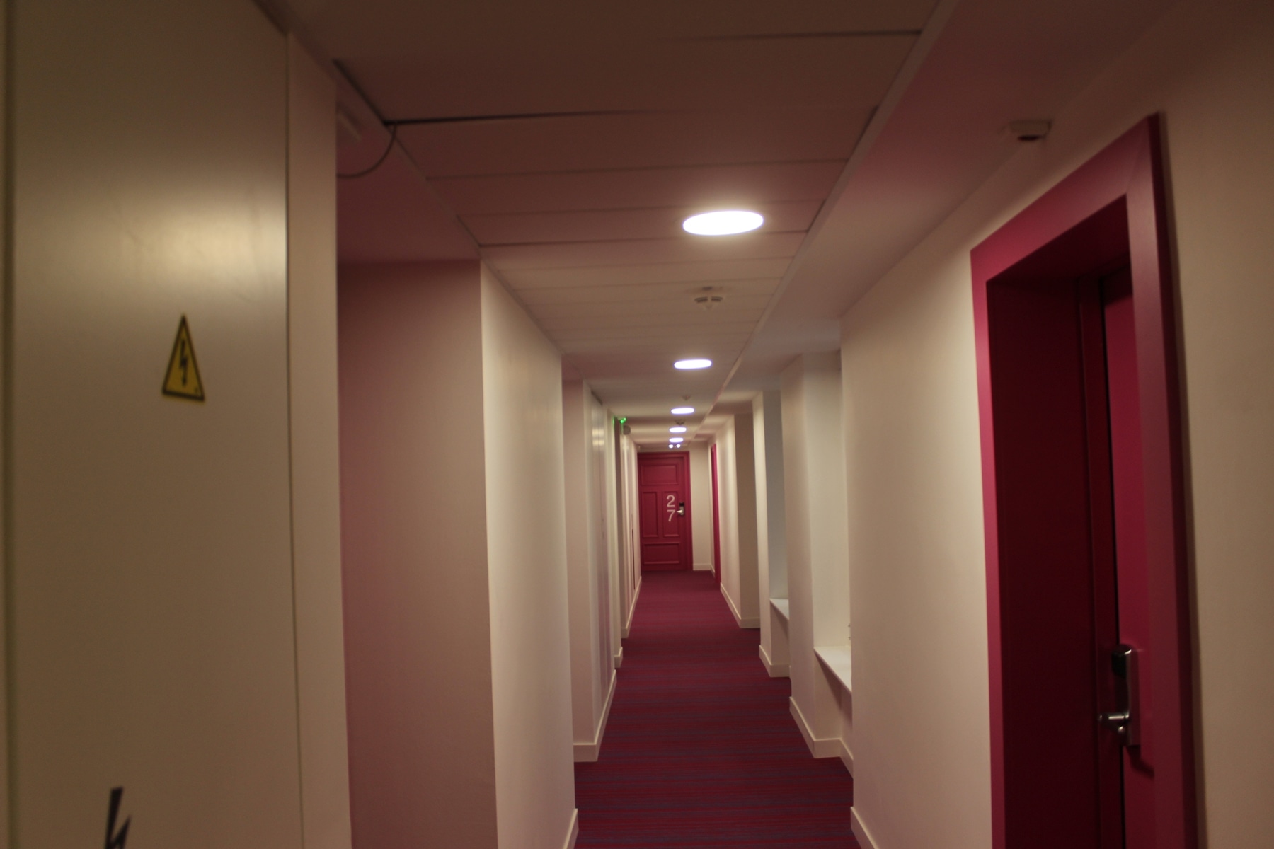 Aux chambres dédiés aux étudiants s’ajoute une offre d’une vingtaine de chambres « court séjour », au même prix sauf pour les non-étudiants (de 16,12 à 34,34 euros la nuitée). Le Crous vise cette fois les étudiants ou les enseignants chercheurs de passage à Strasbourg, dans le cadre d’échanges. Ces chambres sont situées dans l’étage de couleur fuschia, à l’entresol.