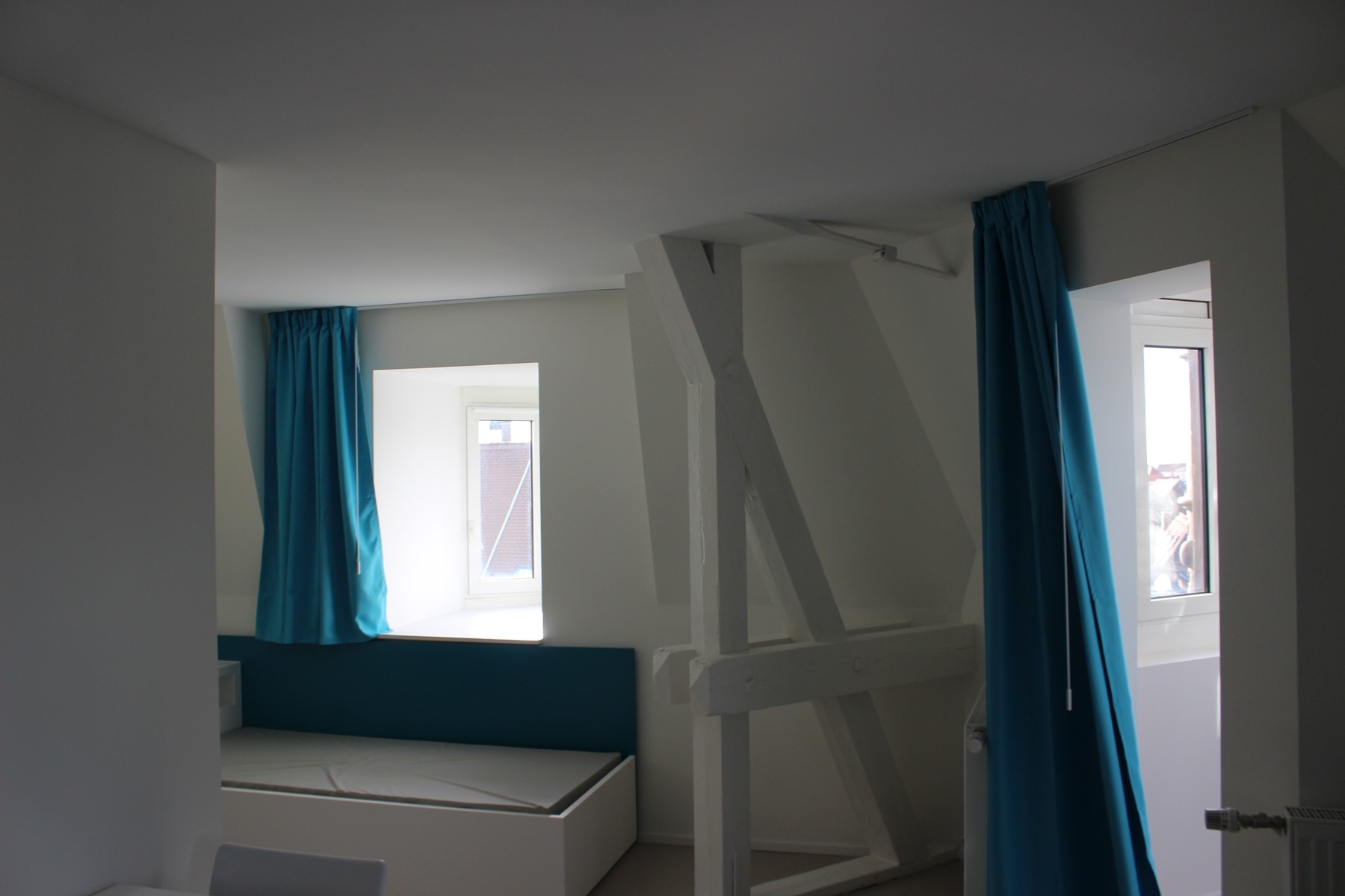 Des étudiants vont de nouveau pouvoir se loger dans la résidence universitaire du Centre régional des oeuvres universitaires (Crous) à la Gallia, tout juste rénovée. Les chambres sont toutes neuves, avec une vue imprenable sur le boulevard de la Victoire ou les quais du sud de l’île centrale de Strasbourg.