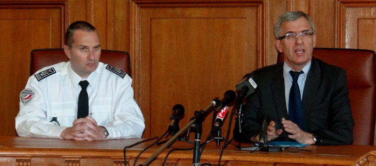 Le commandant Roussel et le procureur adjoint, M. Claude Palpacuer au Palais de Justice de Strasbourg. (Photo T.T / Rue89 Strasbourg)