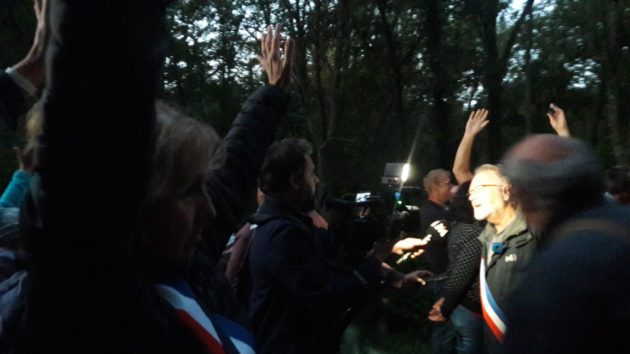 Encerclés par les CRS dans la clairière de la ZAd #dnainfos @rue89stg_live @DNALive_ pic.twitter.com/Dm2Rc60LIX