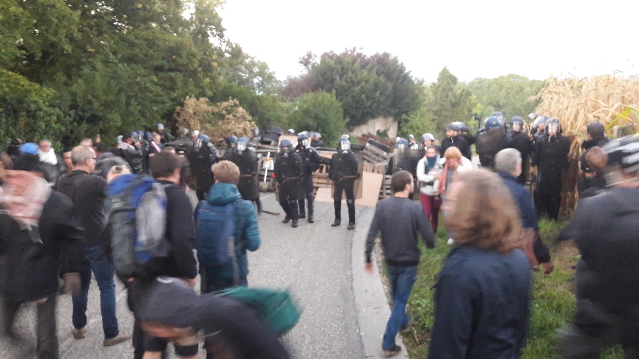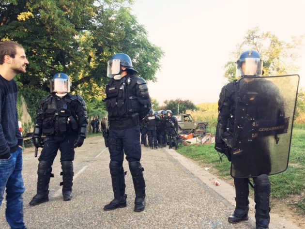 Au coeur de la #Zad de #Kolbsheim contre le #GCO et encerclés par de très nombreux gendarmes aux ordres d’un préfet criminel pour le #climat et au service de Vinci pour un écocide. Que fait @FdeRugy ??? pic.twitter.com/1YgqTGjody