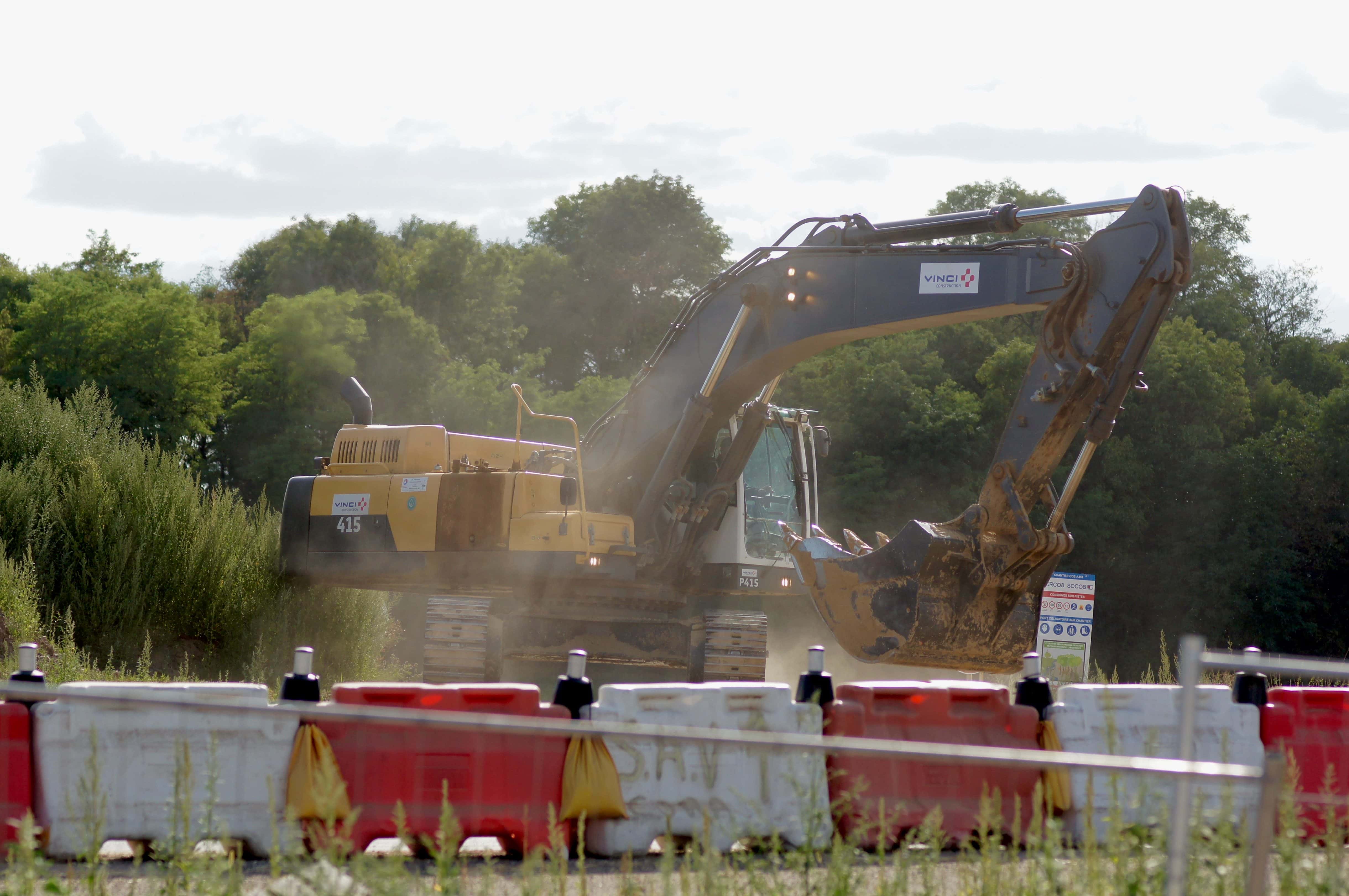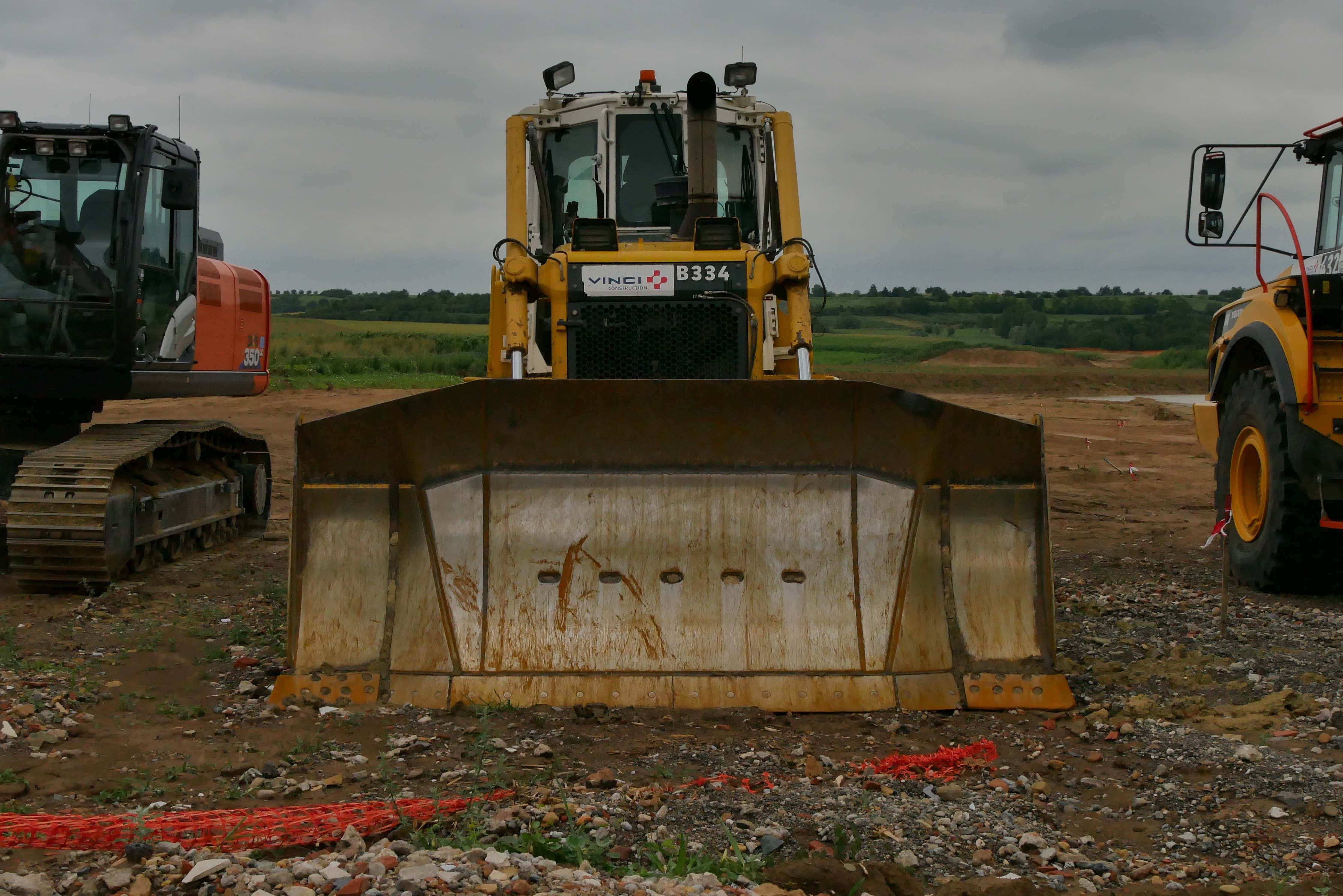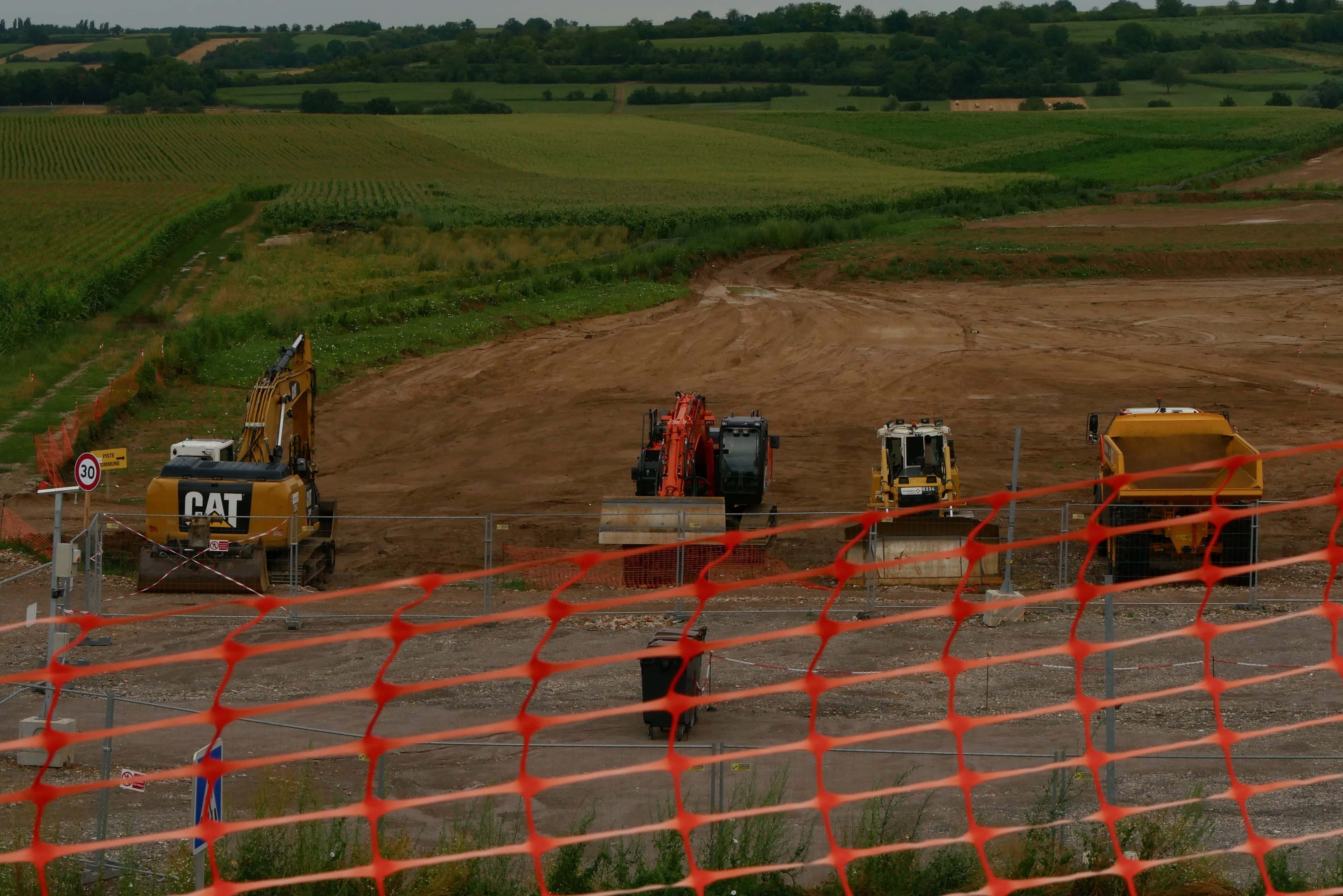 Sans machine, pas de grands travaux… Photo : Guillaume Krempp / Rue89 Strasbourg / cc Pause dans les travaux de terrassement. Photo : Guillaume Krempp / Rue89 Strasbourg / cc Les engins de Vinci. Photo : Guillaume Krempp / Rue89 Strasbourg / cc A quelques dizaines de mètres d’une ferme, les travaux se poursuivent près de Stutzheim-Offenheim. Photo : Emeline Burckel / Rue89 Strasbourg / cc La construction du GCO se fait sur près de 300 hectares de terres agricoles… Photo : Guillaume Krempp / Rue89 Strasbourg / cc