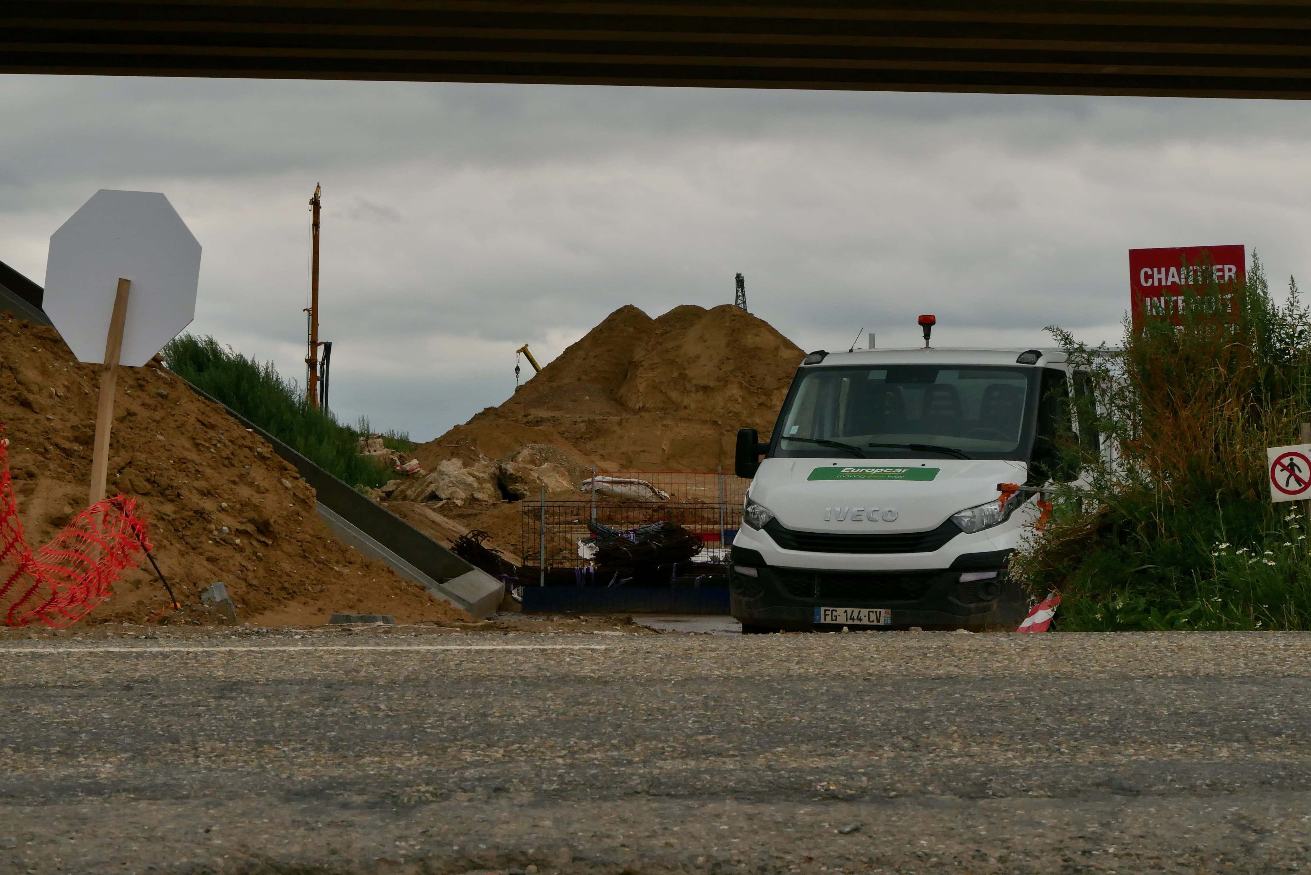 Le GCO traverse la forêt de Kolbsheim, maintenant séparée en deux. Photo : Guillaume Krempp / Rue89 Strasbourg / cc En fin de journée, le chantier se vide de ses ouvriers. Ici, à proximité d’Ittenheim. Photo : Emeline Burckel / Rue89 Strasbourg / cc Derrière ce pont en construction, camions et bulldozers s’activent. Photo : Emeline Burckel / Rue89 Strasbourg / cc A Kolbsheim, au bout de l’étendue déserte, un tractopelle à l’arrêt. Photo : Guillaume Krempp / Rue89 Strasbourg / cc « Ils feraient mieux de creuser tout ça avec des pelles! » Photo : Guillaume Krempp / Rue89 Strasbourg / cc