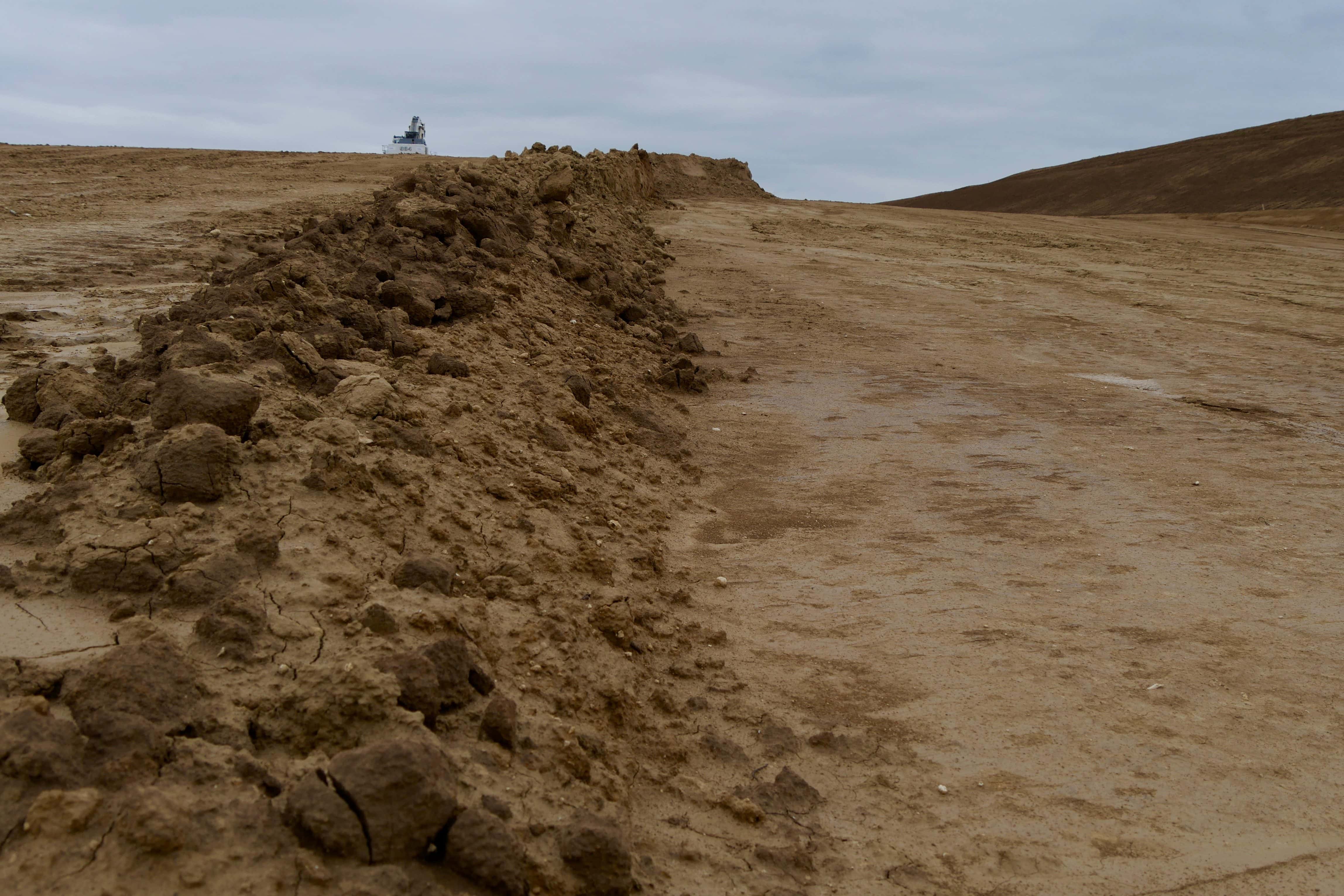 Un an plus tôt, le même reporter couvrait l’évacuation de la ZAD du Moulin, à quelques centaines de mètres d’ici. « C’est impressionnant. Je ne reconnais presque plus l’endroit », lâche-t-il. Un peu plus loin, un autre curieux reste figé au bord du fossé brun. Se tenant les côtes, il regarde l’étendue de terre brune, comme abasourdi. Voyant le photographe, il tente une blague, comme pour rompre ce silence gênant : « Ils feraient mieux de creuser tout ça avec des pelles ! »