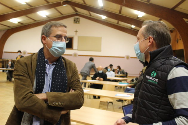 Ponctuel, le directeur régional de Fonroche, Olivier Heckel, franchit la porte à son tour. Un exercice inhabituel pour lui ? Pas du tout. « Nous avons eu des rencontres sur les communes de Reichstett, Vendenheim et Reichstett dès le début, vers 2015. C’est peut-être le moment d’élargir », dit-il. À ses côtés, la municipalité a aussi invité Thierry Mosser, le président de Prom’Ober, une association opposée à la géothermie dans le bassin rhénan, pour apporter une contradiction technique. Les deux hommes échangent quelques minutes avant la mise en place.