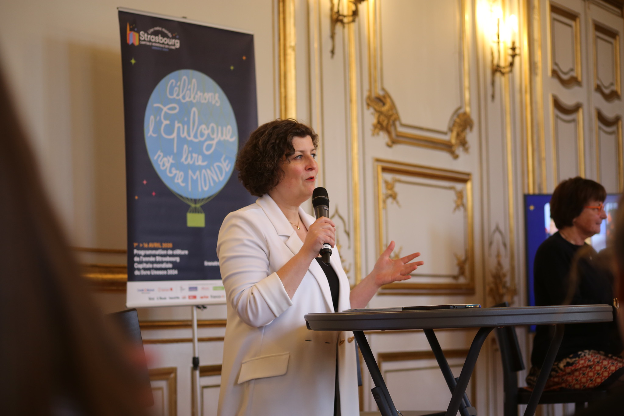 Lors d’une conférence de presse ayant lieu une semaine plus tôt, la maire affirmait sa volonté de rendre pérenne les avancées apporté pour le Livre par l’année Strasbourg capitale mondiale du livre, comme le financement de 16 bourses pour un montant de 80 000 euros pour soutenir la création locale, l’installation de 17 cabanes à livres dans l’EMS ou l’achat d’un stock de 19 000 livres pour les crèches et les écoles. Elle réaffirmait aussi sa volonté de soutenir les éditeurs locaux, dont plusieurs étaient déçus des retombées limitées de l’événement.