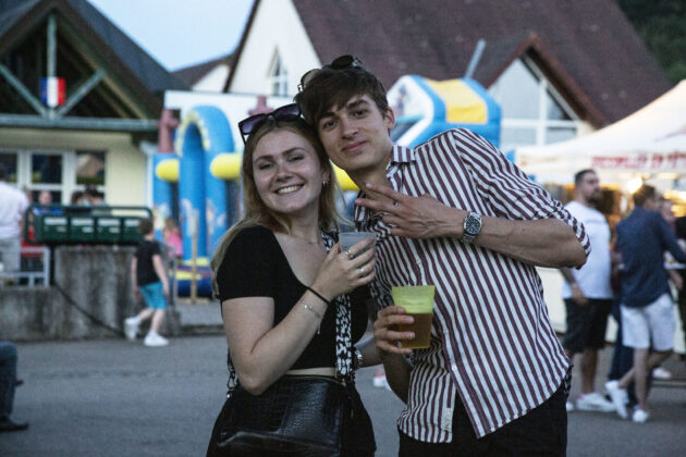 21h45. Un jeune couple regarde la scène et les danseurs de tous les âges en souriant. Enfant du village, David Fieng, 21 ans, vient tout juste d’arriver avec sa copine Caroline Kibort, même âge et parisienne d’origine. Étudiant à Strasbourg, le jeune homme essaie autant que possible de revenir à chaque fête du village :