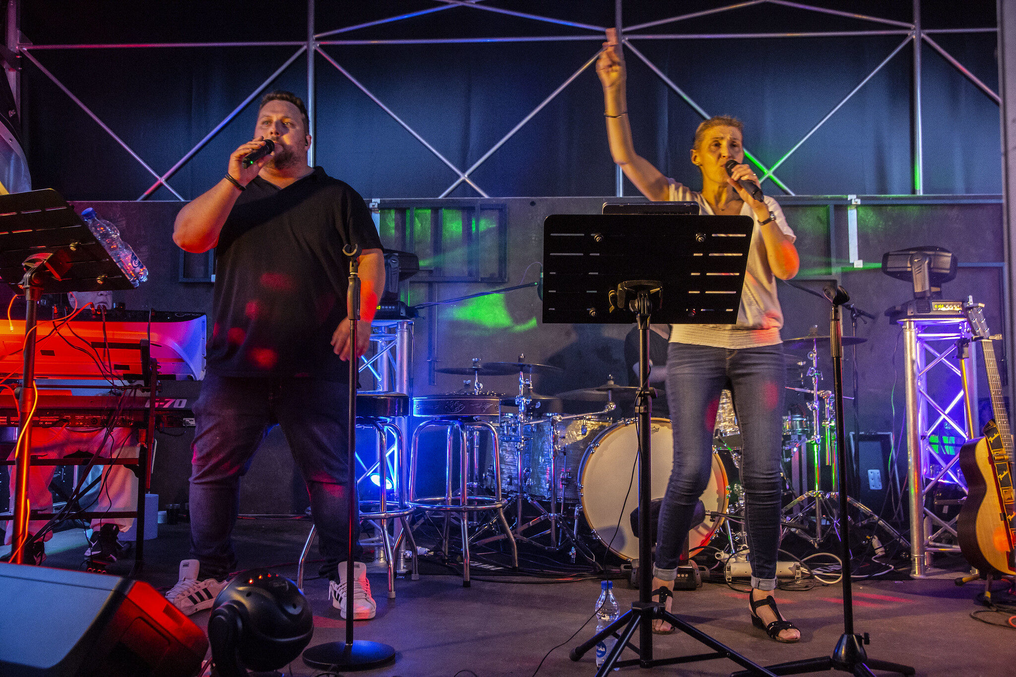 20h30. Quelques danseurs se balancent doucement devant la scène en écoutant l’orchestre jouer Sur la route de Memphis tandis que les files d’attente aux tickets se sont encore allongées. Il faut compter près d’une demi-heure pour obtenir les précieux sésames et attendre à nouveau pour repartir avec son burger ou sa tarte flambée mais personne ne bronche.