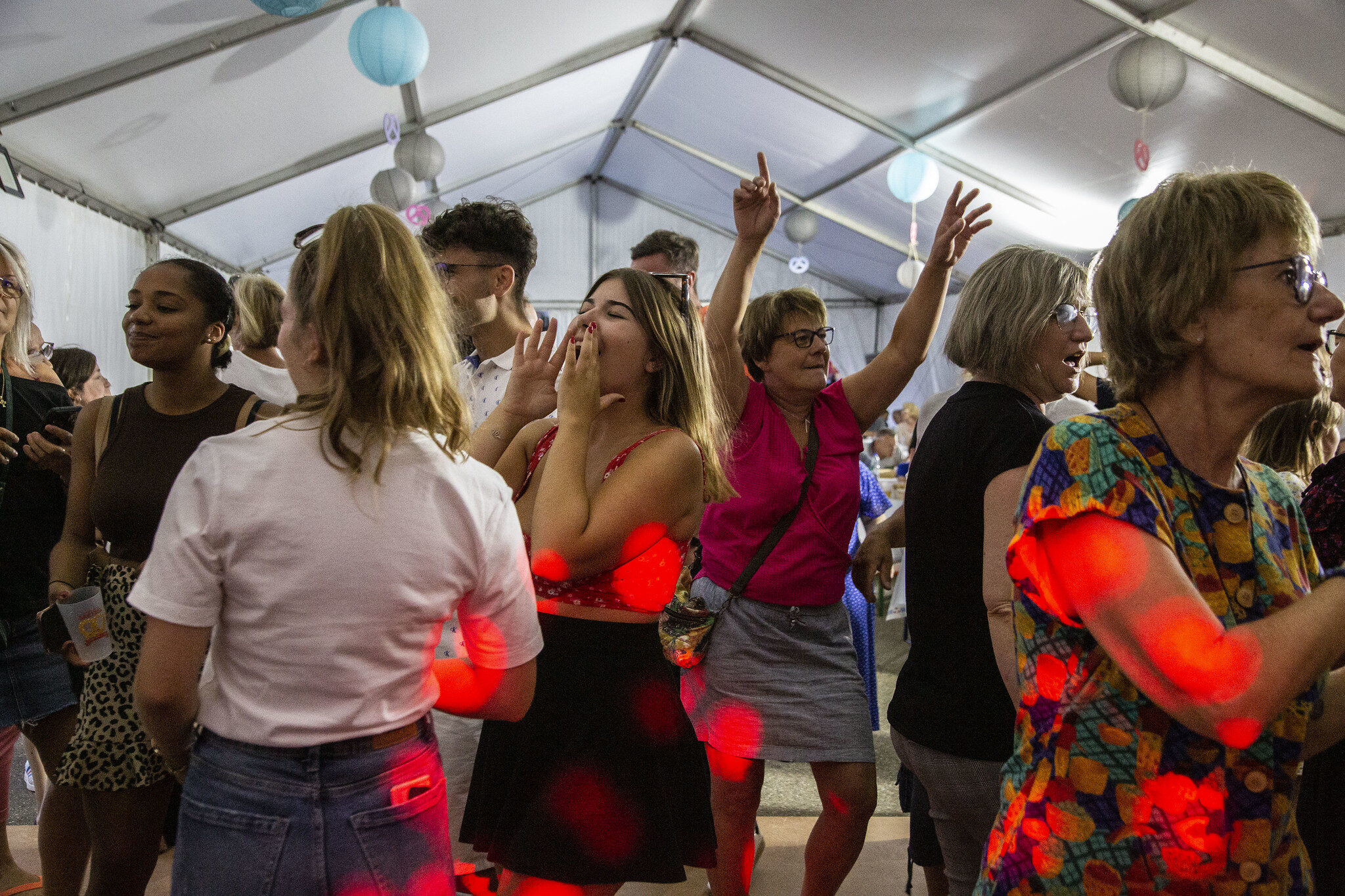 23h30. C’est désormais Laisse moi t’aimer qui fait tanguer les danseurs, devant une tonnelle à moitié vide. Les enfants ont déserté. Mais leurs parents et des anciens poursuivent la soirée. Dans les rues, quelques jeunes se promènent encore en direction de la place. Les parfums de cuisine ont laissé place à ceux des jardins en fleurs, capiteux dans la nuit, au pied des maisons à colombages.