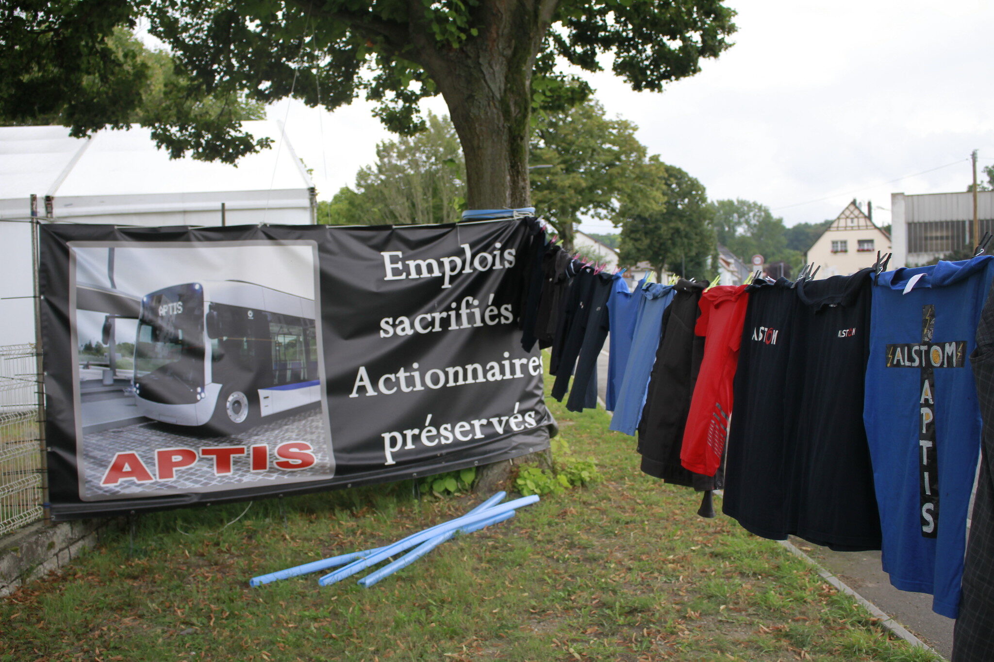 « Gâchis », c’est le mot qui revient sur plusieurs lèvres ce lundi 30 août devant l’usine des bus électriques Aptis à Hangenbieten, une société détenue par Alstom (lire notre enquête). Autour de quelques tartes flambées et de boissons, une centaine de salariés grévistes échangent sur le plan social qui attend les 141 salariés.