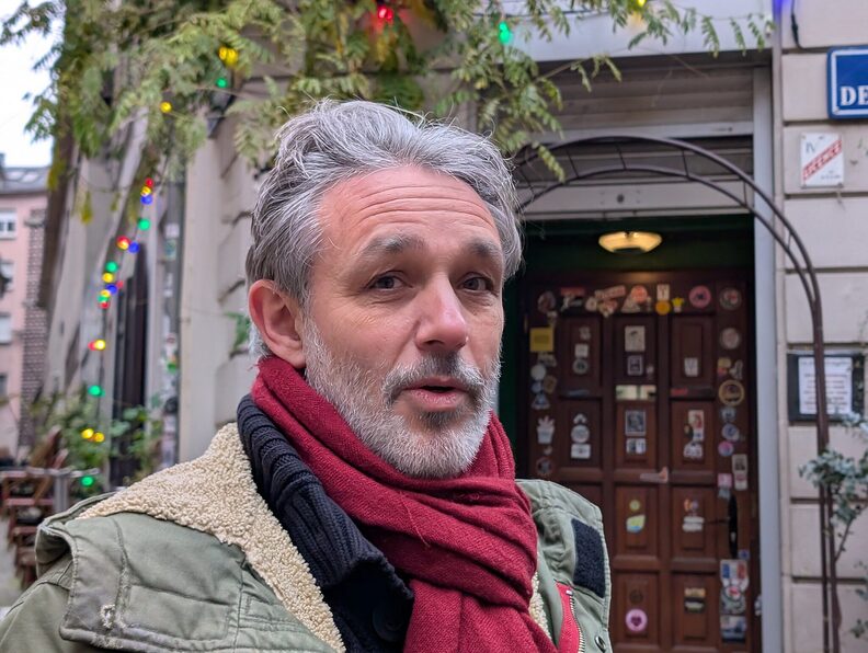 À l’arrière de la Maison-Rouge, la trentaine de grévistes s’est réfugiée dans la chaleur du bar La Mandragore. L’occasion d’aborder la dégradation de leurs conditions de travail. Balayant l’écran de son téléphone, Jean-Pierre Gouvernel fait défiler les photos de sa galerie. Sur l’une d’elles, on voit des seaux déposés sur le sol du magasin pour retenir l’eau s’échappant du plafond. « Il y a aussi des escalators défectueux », souligne une salariée qui préfère taire son nom. « Les locaux pour le stock en réserve ne sont pas adaptés », complète Véronique Kaps :