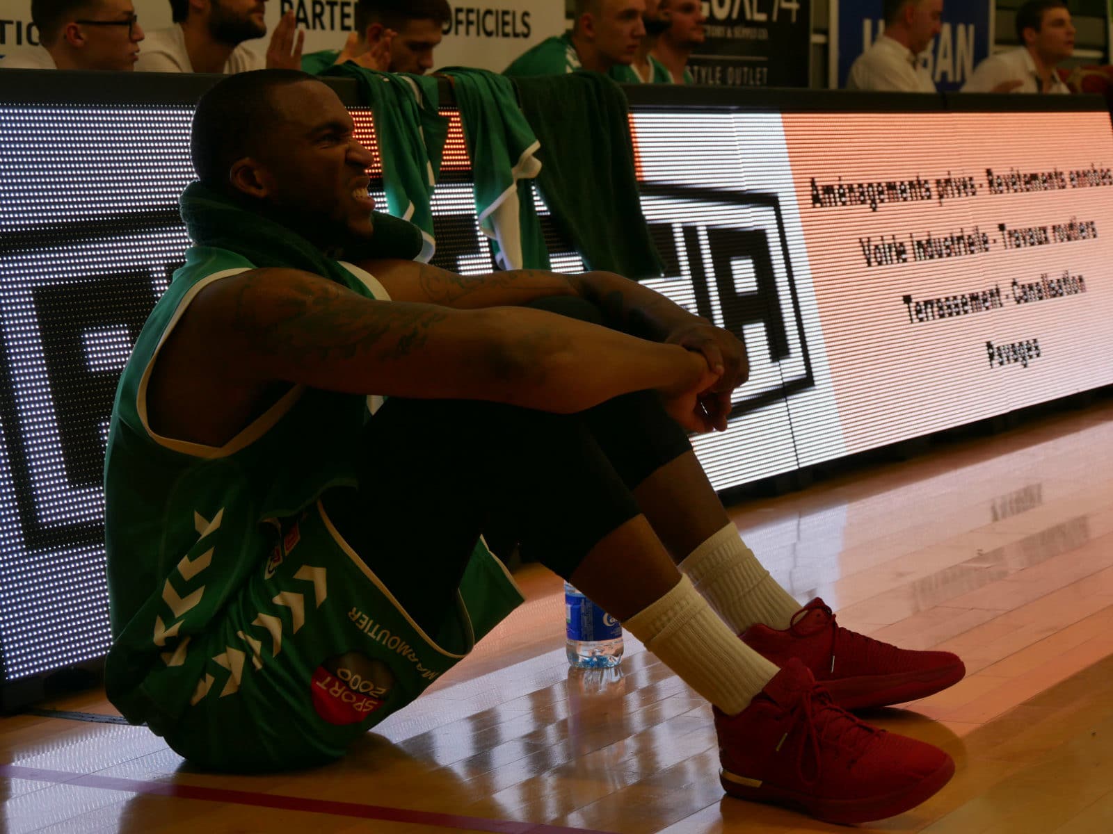 Le début du match est tendu. Les deux équipes sont régulièrement à égalité. Glenn Duro grimace après une action ratée du Basket Club de Gries-Oberhoffen.