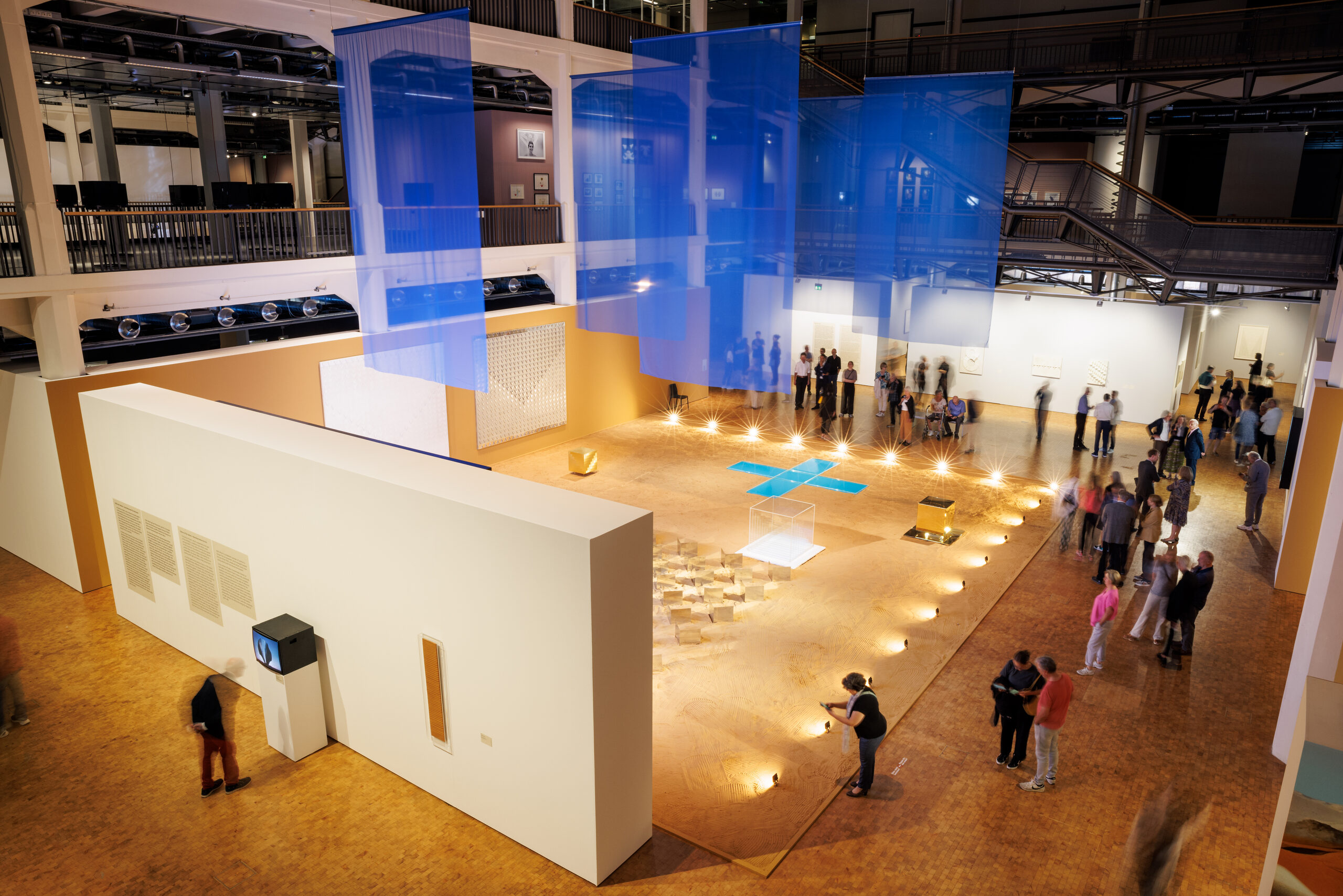 L’entrée débouche sur l’atrium, un grand espace ouvert dans lequel sont exposés plusieurs travaux importants de l’artiste sous forme de grandes compositions. Sur un sol blanc détaché du parquet, Light Choreography présente certains des travaux les plus notables de l’artiste, formant une spirale de dix stèles dressées qui, avec ou sans fonctionnalité mécanique, réfléchissent chacune de manière différente la lumière et l’espace.