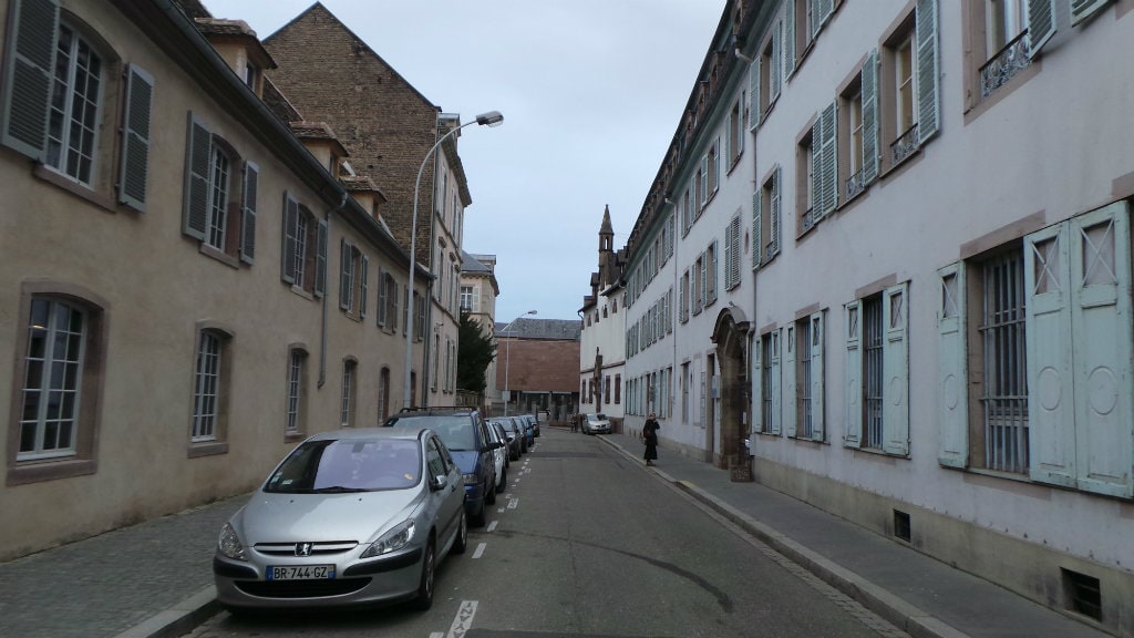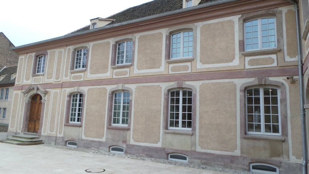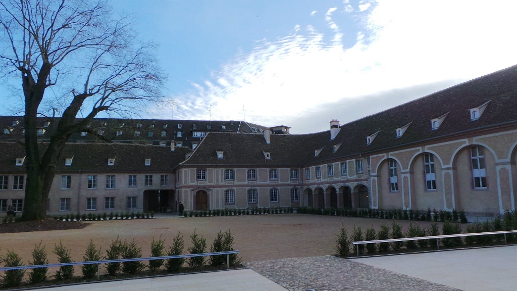 À peine la porte passée, le bruit de la ville disparaît pour laisser place au calme de la grande cour centrale. Les bâtiments ont tous été refaits, et il n’existe plus aucun vestige du passé, si ce n’est les poutres et « le plus vieil arbre » de Strasbourg, un magnifique Sephora Japonica. Jacques, un retraité strasbourgeois présent pour visiter les lieux avec son ami, développe :