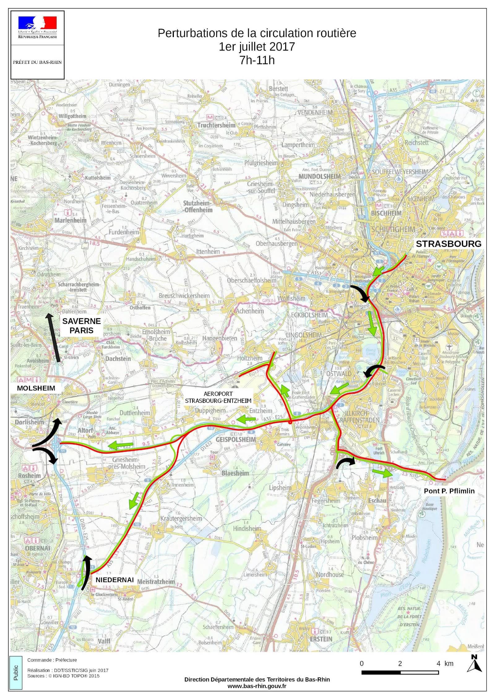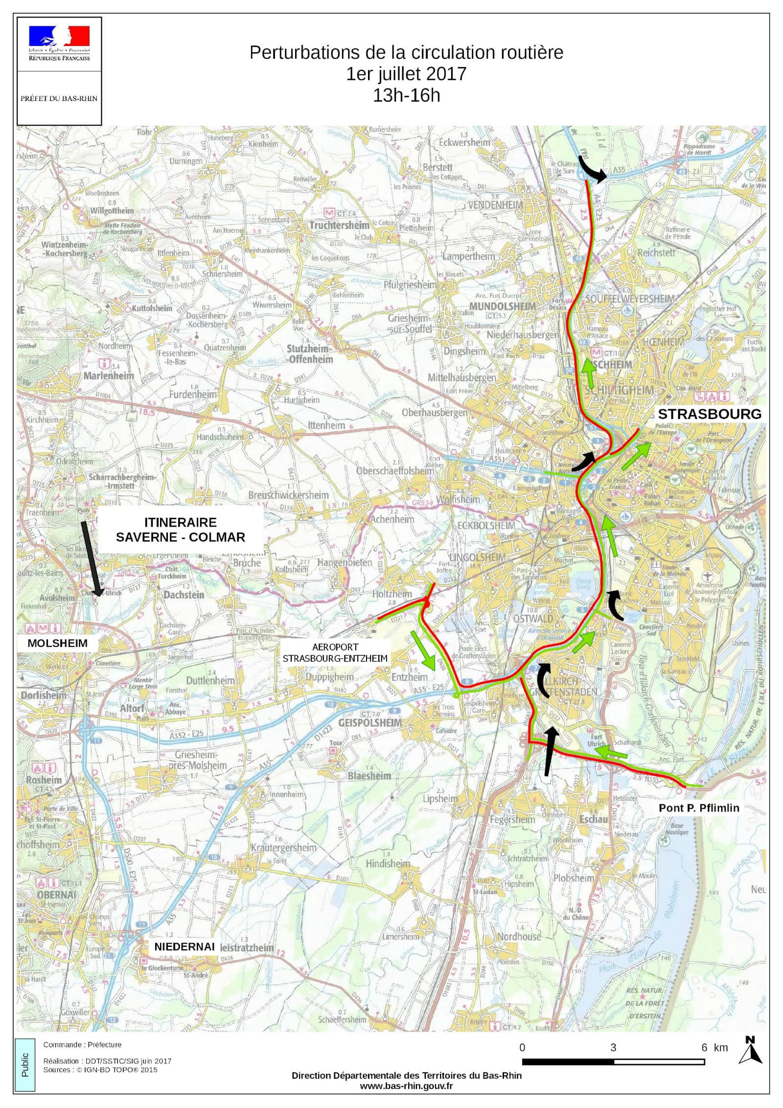 Après 13h, l’autoroute A35 et certaines de ses voix d’accès seront bloquées dans l’autre sens (Parlement européen-aéroport), ainsi qu’en partie vers le nord. Ces fermetures dureront jusqu’à 16h au maximum.