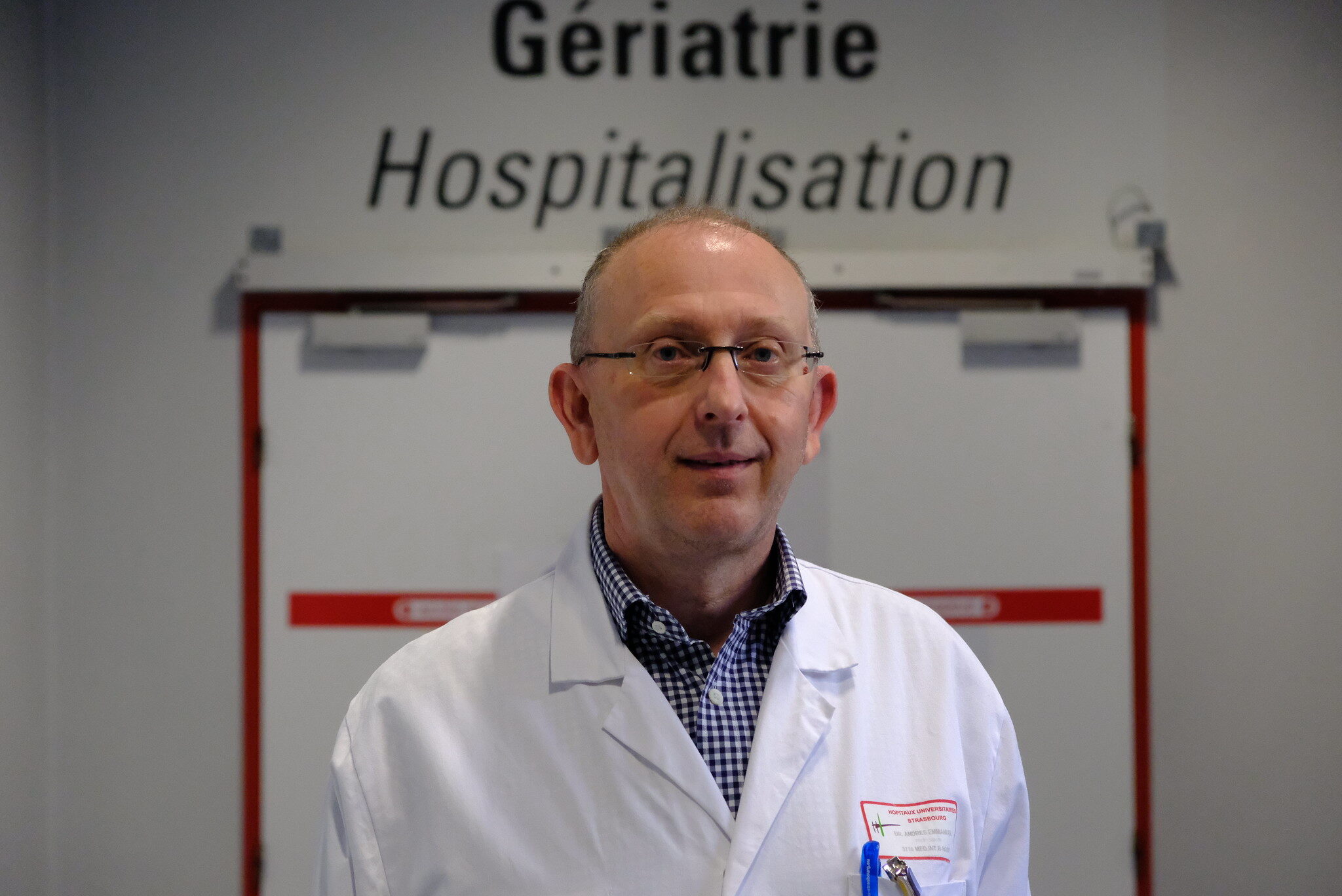 Assis derrière son bureau de la clinique médicale B, le professeur Emmanuel Andrès s’apprête à dérouler un discours désormais rôdé. Depuis quelques mois, le président de la Communauté médicale d’établissement (CME) des Hôpitaux universitaires de Strasbourg (HUS) enchaîne les interviews. Responsable du service gériatrie, il sort de la traditionnelle réserve des médecins.