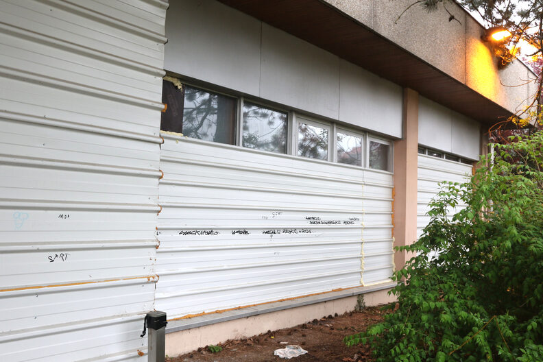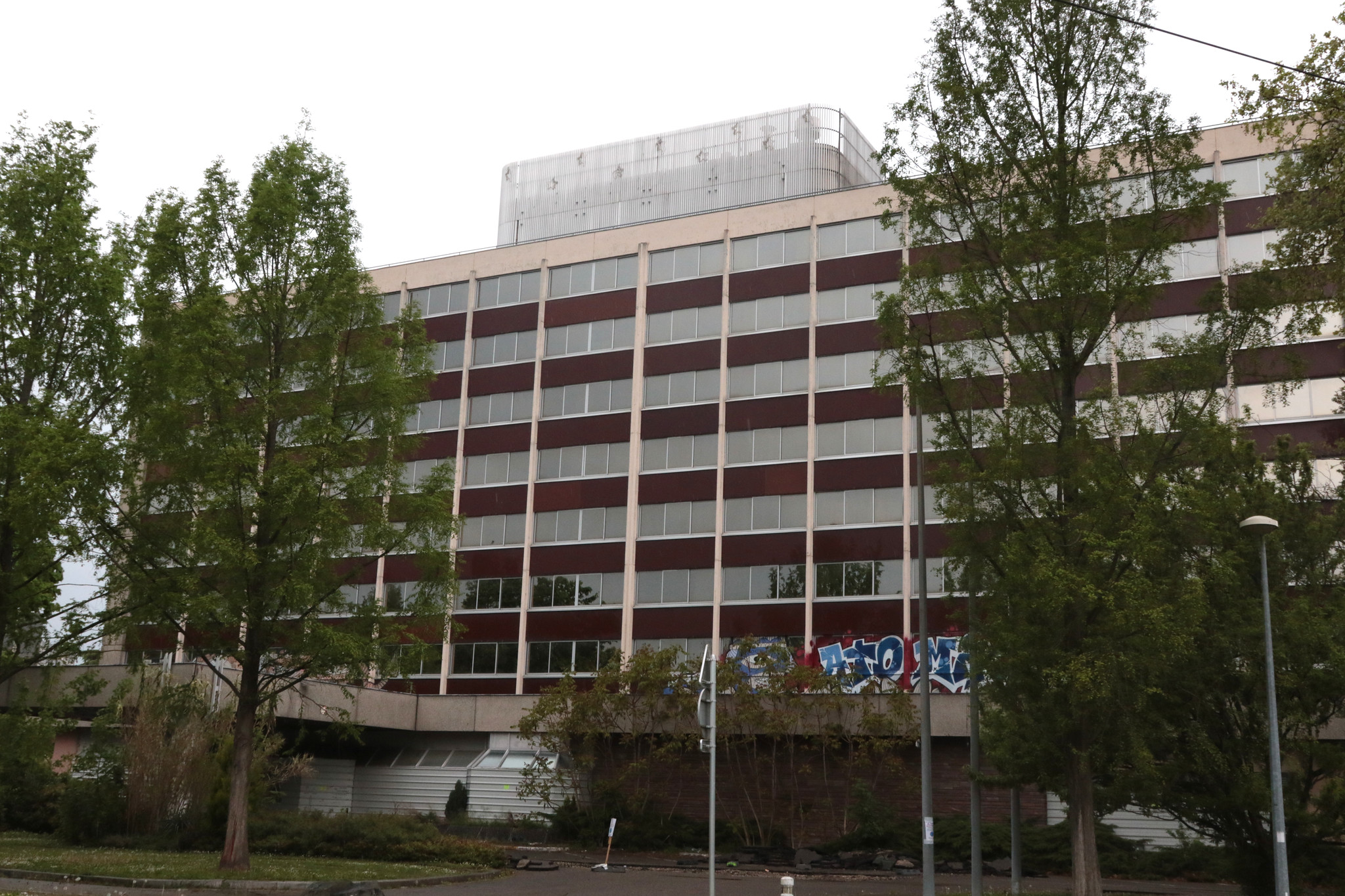 Place de Bordeaux, mai 2025. Une muraille de tôle entoure le rez-de-chaussée d’un bâtiment massif, construit dans les années 70. L’ancien hôtel Mercure est vide depuis 2020. Avant sa fermeture, l’établissement proposait 174 chambres, 600 mètres carrés de salles de conférence, un centre de remise en forme avec piscine sauna et hammam, un « lounge bar » et un restaurant. Des locaux devenus vacants, parmi les milliers de surfaces non occupées à Strasbourg, alors que des dizaines de familles dorment à la rue.