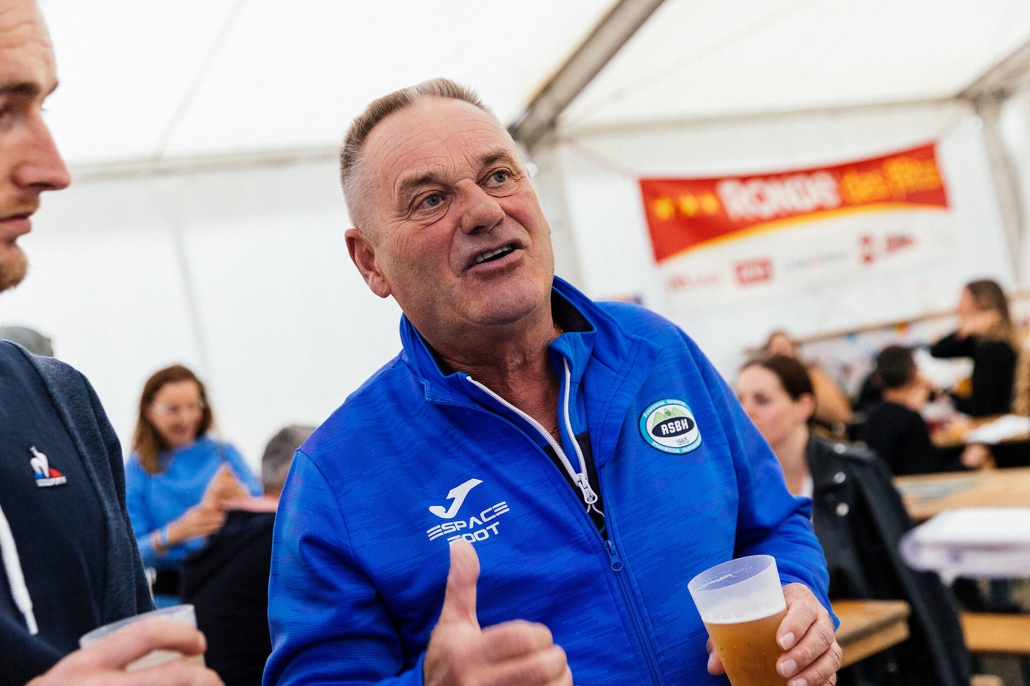Il discute avec Bruno, une figure du club. « Ici c’est le bonheur » dit le retraité qui vient « quatre jours par semaine ». Seule inquiétude pour Bruno, la réaction des jeunes qui n’ont pas connu de fête d’ampleur pendant deux ans, pour cause de Covid. D’ailleurs, la Humpafascht dispose d’un imposant dispositif de sécurité avec une quinzaine d’agents de sécurité en coupe vent jaune fluo. Un mauvais souvenir est dans les mémoires : en 2007, une personne exclue de la soirée avait foncé avec son véhicule dans la foule causant un mort et 16 blessés. Tous les ans se tient un match à la mémoire du joueur de 21 ans décédé.