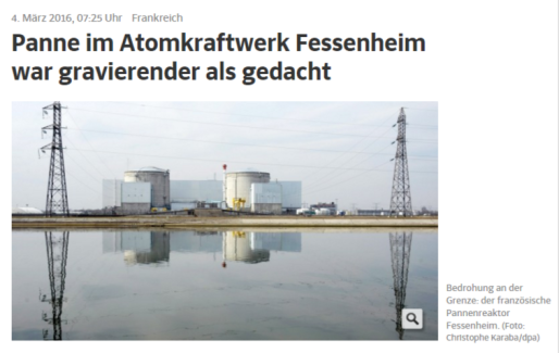 Une enquête conjointe de la radio publique WDR (West Deutsche Rundfunk) et du journal Süddeutsche Zeitung met en cause la sécurité à la centrale nucléaire de Fessenheim. Lors de l’arrêt d’un des deux réacteurs le 9 avril 2014 puis de second le 18 avril, EDF, qui exploite la centrale, avait indiqué qu’il n’y avait pas de danger pour les installations, car il s’agissait d’une fuite d’eau en dehors des installations nucléaires.