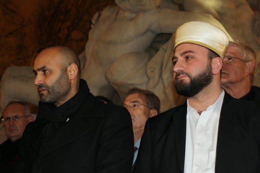 Abdelhaq Nabaoui et Eyup Sahin, vice-président et actuel président du CRCM, le 9 janvier à Strasbourg lors du rassemblement de réaction aux attentats terroristes à l’appel des musulmans. (Photo Claire Gandanger / Flickr / cc)