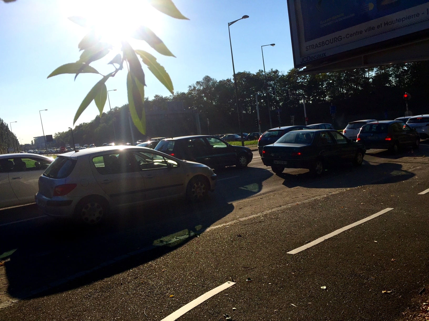 Ce jour là le vent souffle et disperse les gaz d’échappement, mais je ne suis pas certain que par une météo chaude et sans vent, pour des raisons de pollution, ce tronçon soit très adapté à la pratique du sport. Dans le même état d’esprit le passage place de Haguenau n’est franchement pas adapté à la pratique du sport; ce n’est qu’un passage en attendant de rejoindre les quais de l’Ill, bien plus agréables à fouler.