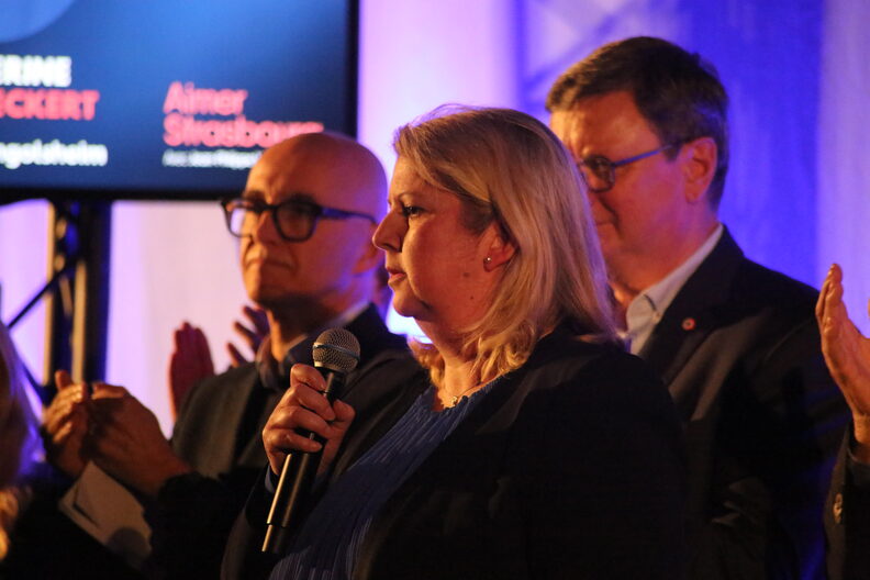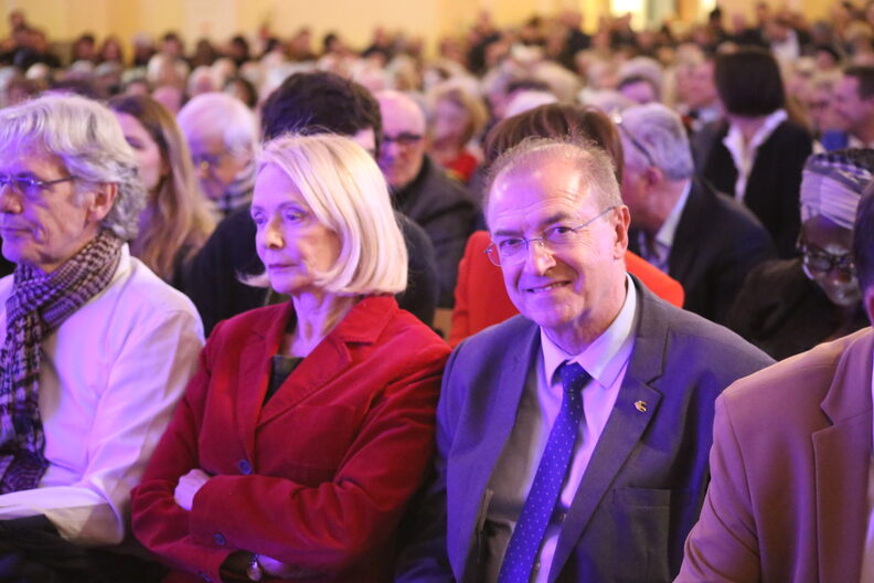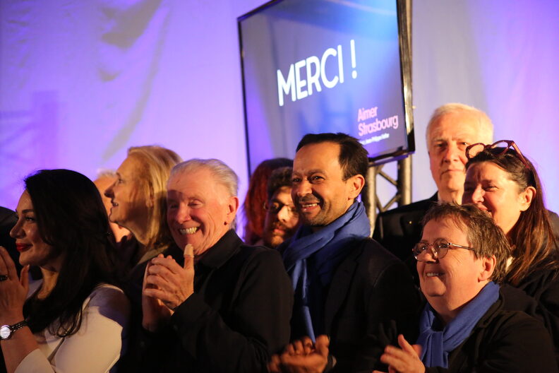 Sur scène, la démonstration de force est assumée. Quatorze figures de la droite alsacienne défilent sous la lumière : Frédéric Bierry, le président de la Collectivité européenne d’Alsace, Catherine Graef-Eckert, maire réélue de Lingolsheim, Laurent Furst, de Molsheim et plusieurs édiles de droite de l’Eurométropole.