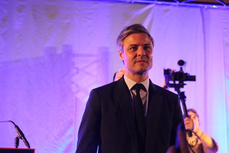 La musique monte doucement dans la salle de la Bourse à Strasbourg au soir du mardi 17 mars. Un fond presque solennel. À l’intérieur, il faut se faufiler. Toutes les chaises sont occupées, les allées débordent, et des dizaines de personnes restent debout au fond et sur les côtés. L’atmosphère est dense, presque étouffante. L’organisation annonce 700 personnes. Dans la salle, les conversations s’éteignent à mesure que les regards convergent vers l’allée centrale. Il est 19h50 quand Jean-Philippe Vetter, candidat Les Républicains à la mairie de Strasbourg, fait son entrée, happé par un bain de foule. Poignées de main, sourires, tapes dans le dos. « On va gagner », scandent les participants. Deux jours auparavant, le candidat est arrivé deuxième du premier tour des élections municipales, un score inattendu pour un candidat de droite à Strasbourg, à 2 000 voix seulement de Catherine Trautmann.