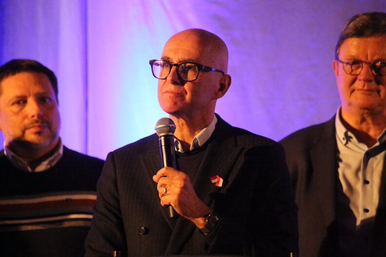 Plus tôt dans la soirée, Jean-Luc Heimburger, ancien président la Chambre de commerce et d’industrie jusqu’en novembre 2025 avait donné le ton :« On ne crée pas d’emploi sans parler d’entreprises. » Une ligne que le candidat reprend à son compte dans son discours.