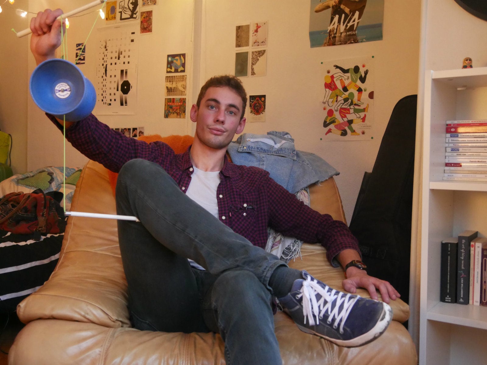 « Mon numéro, je le considère comme un produit. » Jérôme Coquelle est diaboliste. Et l’étudiant à l’école de Management (EM) de Strasbourg compte bien le rester : « Je suis ambitieux, je veux vivre du diabolo ». À 23 ans, le jeune homme entame bientôt sa dernière année d’études. Pour préparer sa carrière de circassien, Jérôme vient de lancer son site internet. Il enchaîne les rendez-vous à Paris. Rue89 Strasbourg l’a rencontré chez lui, vendredi 9 mars.