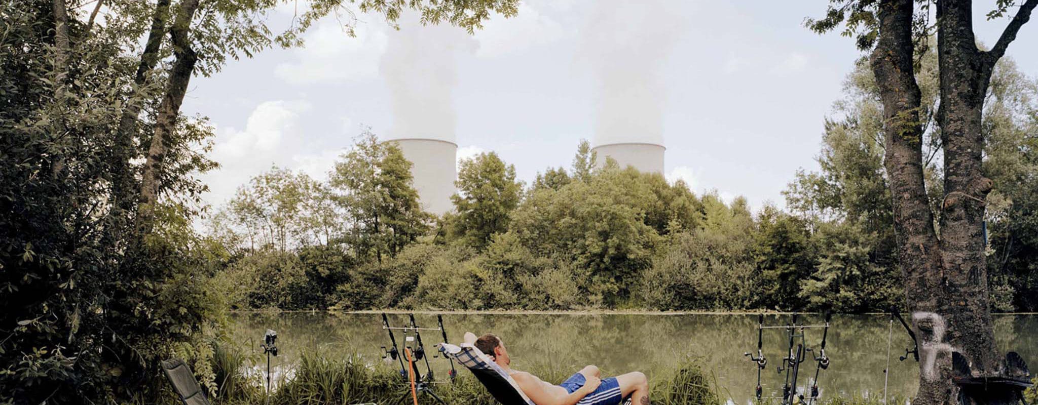 Invitant à la détente et à la contemplation, ce cliché d’apparence sereine renferme pourtant une vérité bien plus inquiétante : partiellement cachées par les arbres au centre de la composition, deux immenses tours de refroidissement se dressent à l’arrière-plan. Motif récurrent dans l’ensemble de la série, ces tours en béton, signe couramment associé à l’énergie nucléaire, sont aussi imposantes qu’effrayantes. À contre-courant, c’est pourtant le caractère poétique et presque « sublime » de cette architecture industrielle que Jürgen Nefzger souhaite mettre en lumière.