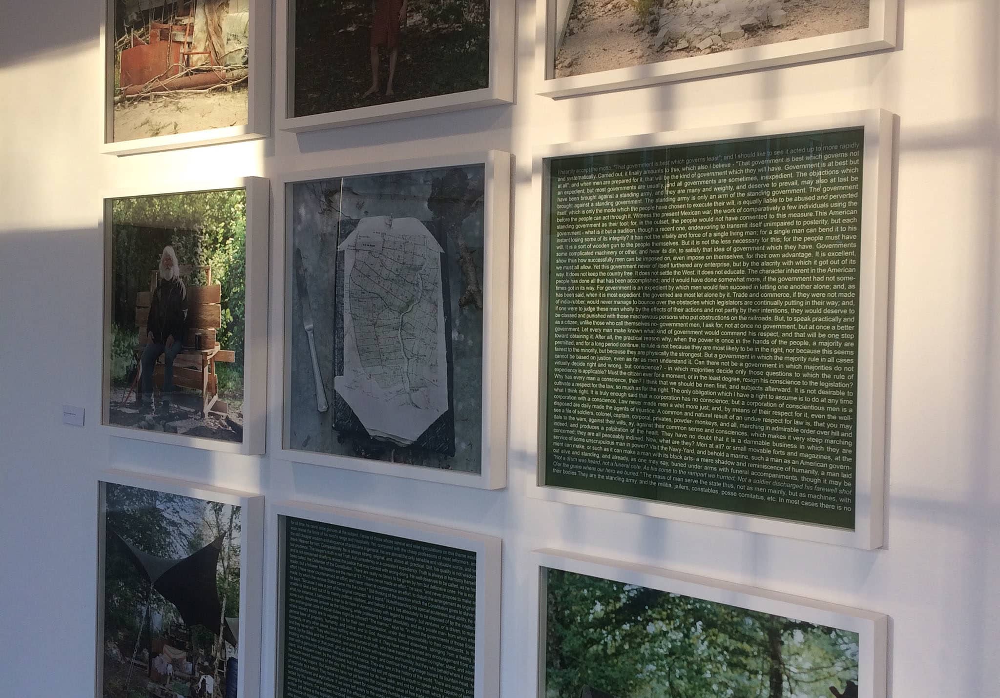 Les clichés représentant la forêt, désertée de toute présence humaine, affirment une ode à la nature. Ailleurs, des militants pacifistes semblent développer une communion avec cet environnement menacé. Dans la ligne de la « désobéissance civile » prônée par Thoreau, les photographies mettent en avant une résistance passive et non-violente. Un extrait du texte issu de son essai éponyme La désobéissance civile (1849) fait d’ailleurs partie de la série et résonne avec ces luttes contemporaines. C’est finalement au regardeur de s’interroger : que faire face à un pouvoir démocratique qui n’écoute pas la protestation de la société civile ? Comment résister et désobéir aux décisions d’un gouvernement ?