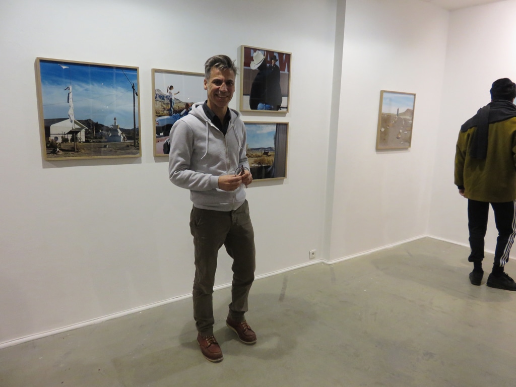 Au premier abord, l’exposition de la Chambre nous procure le plaisir du voyageur qui flâne, le nez en l’air, et se délecte du moindre détail car il lui paraît exotique. Le décor est planté dès l’entrée avec une immense vue de désert, additionnée de quelques élément humains. La visite de la ville peut commencer, mais elle n’aura rien de touristique. On y croisera quelques éléments attendus : le pick-up, le bowling, les vétérans, les chapeaux de cow-boys, … Mais Ronan est un aventurier sensible, qui se laisse porter par le feeling et va à la rencontre des gens, et par là même évite les lieux communs .
