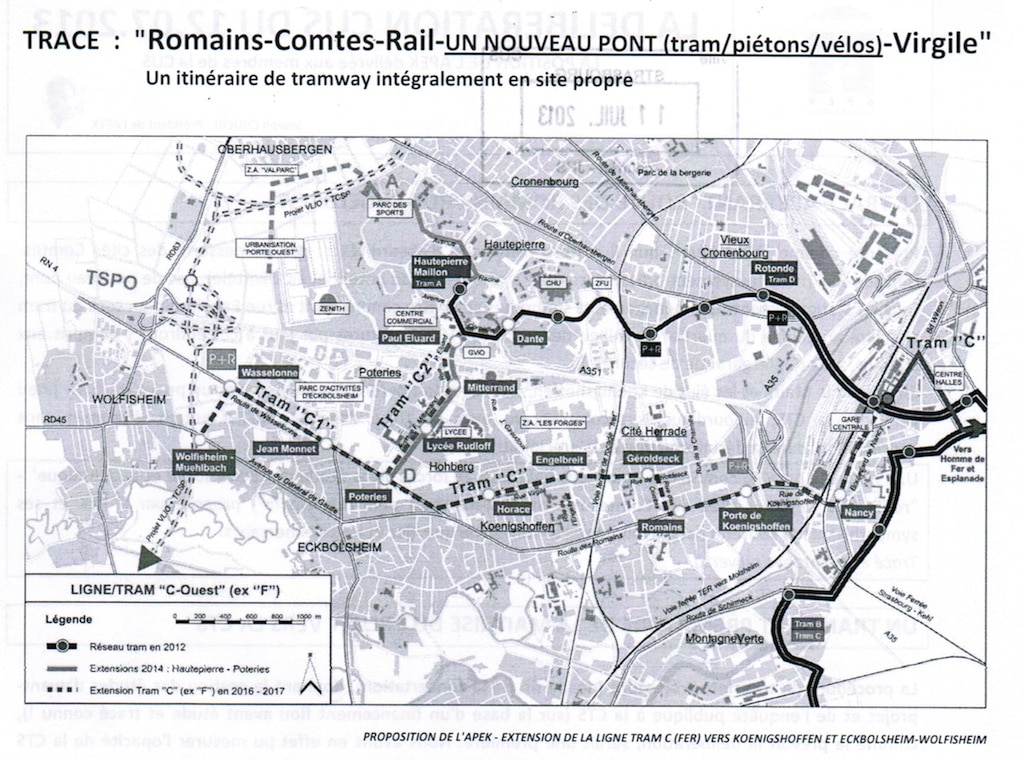 Le tracé retenu dans la délibération présentée aujourd’hui était celui adapté au pneu. Nous, nous voulons un tram qui passe allée des Comtes, avec des stations Herrade et Hohberg, qui rejoigne ensuite la rue Virgile [et pas le tracé par la rue de l’Engelbreit]. Nous voulons aussi un nouveau pont sur la voie ferrée et du site propre intégral, comme partout ailleurs sur le réseau. »