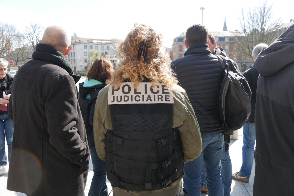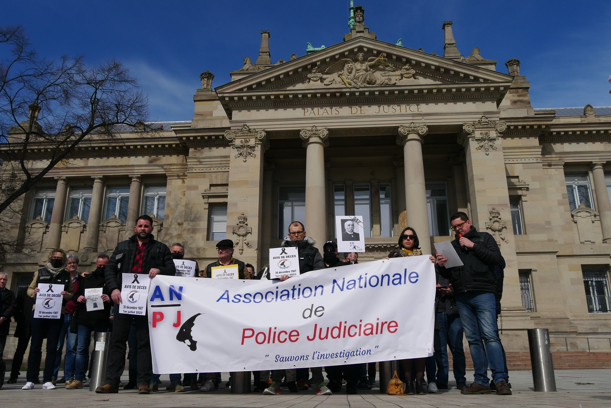 Ils étaient une petite cinquantaine à se retrouver sous le soleil de midi, devant le tribunal judiciaire de Strasbourg. Ce jeudi 16 mars, des enquêteurs de la police judiciaire de toute la France se sont mobilisés, afin de faire entendre leurs inquiétudes au sujet de la réforme de la police nationale, qui entrera en vigueur le 1er juillet 2023.