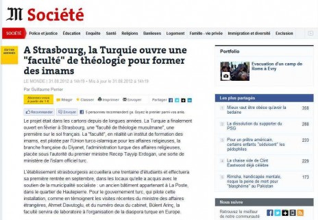 Le Monde revient sur l’ouverture en février d’une « faculté de théologie musulmane » à Strasbourg, dans un ancien bâtiment de La Poste à Hautepierre. Cette création est en effet une première sur le sol français, selon le quotidien. Cet institut de formation des imams est directement piloté par l’administration turque des affaires religieuses. Il s’agit pour la Turquie de former les imams devant officier sur le sol français et par ricochet, de garder un peu d’influence sur la population turque émigrée dont les liens avec leur patrie d’origine se distendent avec le temps.