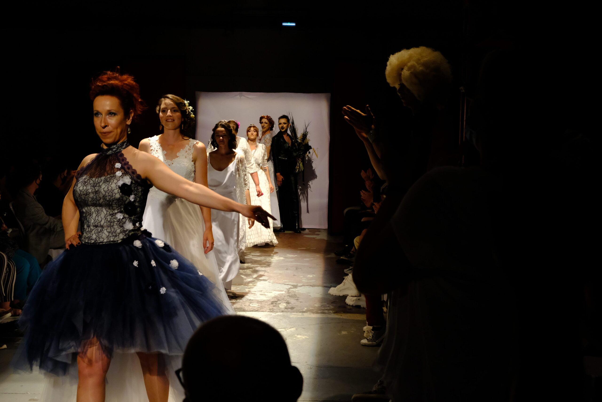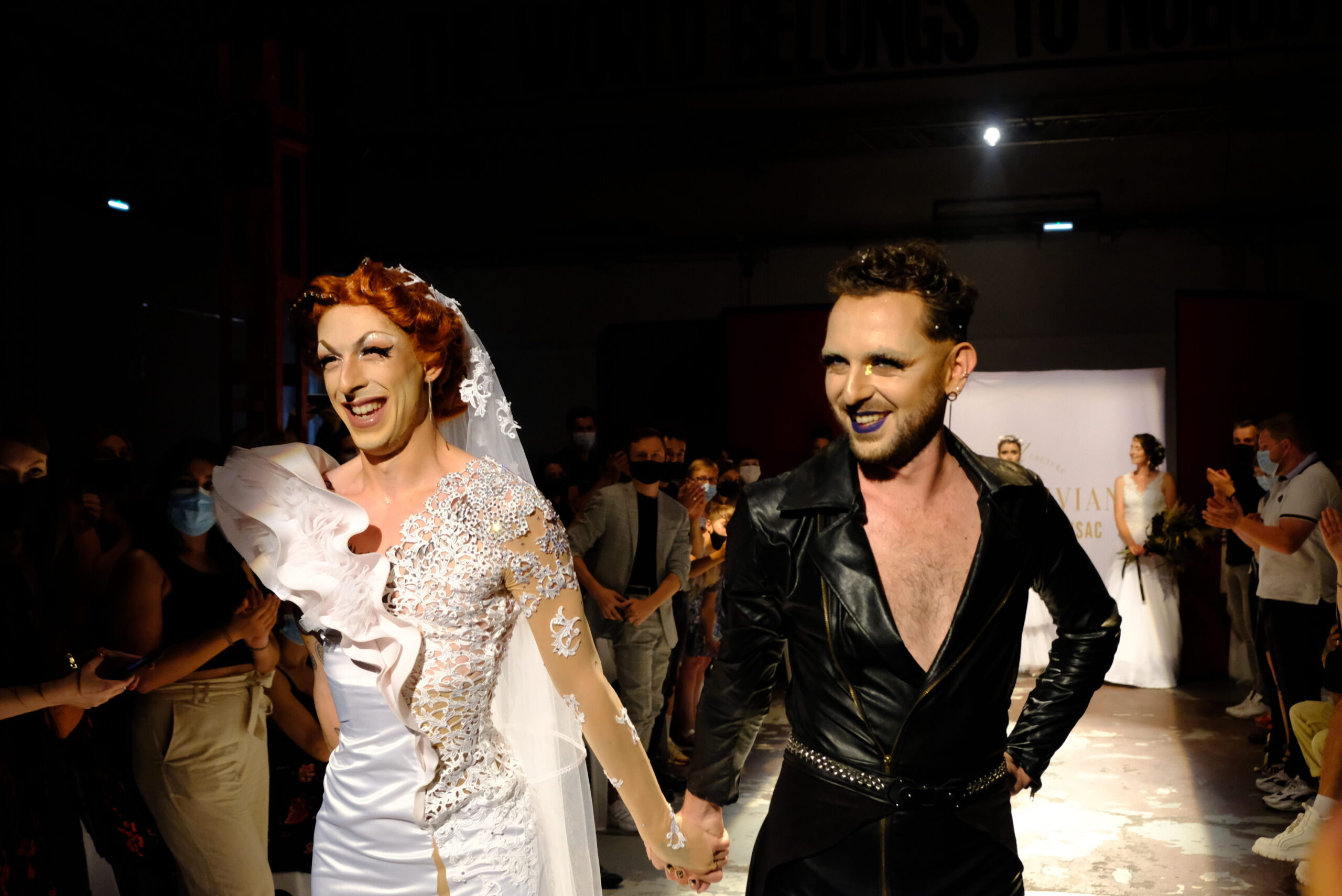 Des mannequins séniors, de grandes tailles, androgynes ou encore en fauteuil roulant défilent ce dimanche 27 juin à l’espace Colod’Art à la Meinau. Ils et elles arborent toutes des robes de mariés, pour homme ou pour femmes. L’objectif de James et ViviAnn, les deux créateurs de la nouvelle maison de couture Du Fermoir de Monsac, est clair : dé-genrer le monde du mariage.