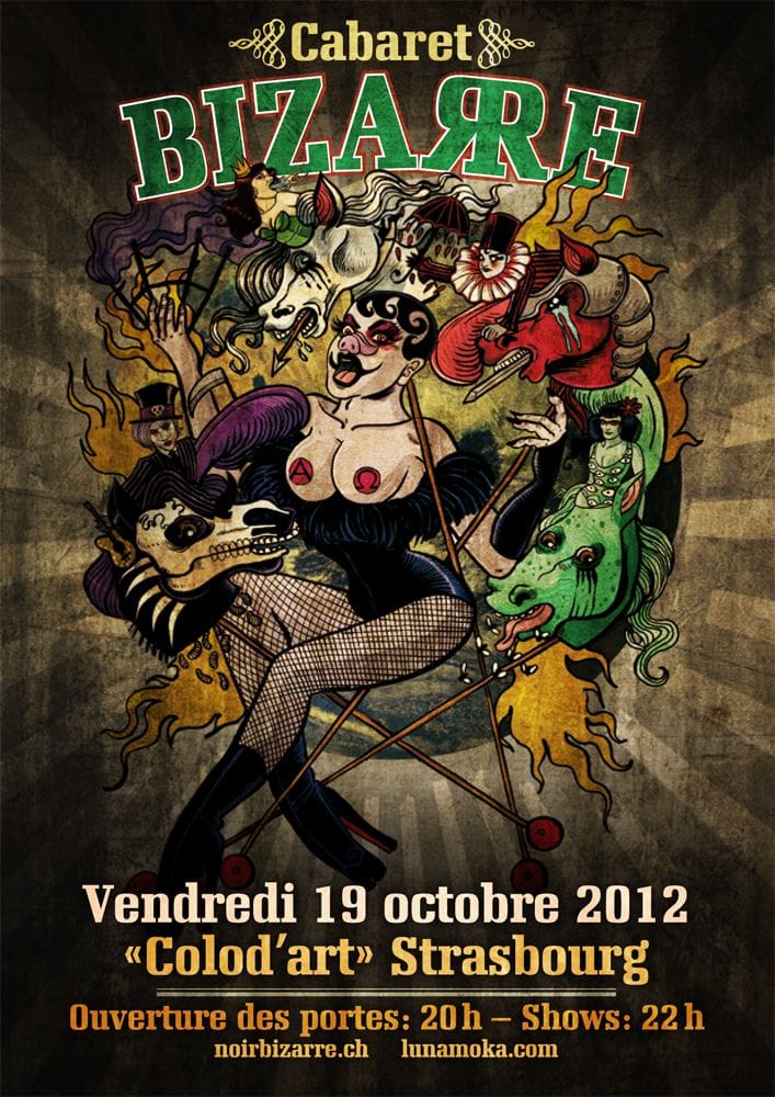 Cabaret bizarre le vendredi 19 octobre à 22h (ouverture des portes à 20h) à l’Espace Colod’Art de Strasbourg, 28 rue du Maréchal Lefèbvre à Strasbourg. Tarifs : Costumé 18 euros, non costumé : 22 euros.
