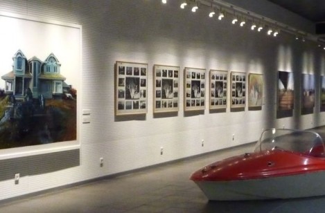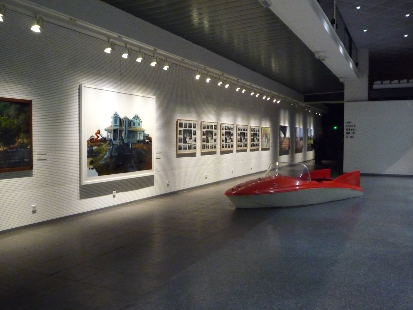 Il s’agit principalement de photographies comme le dit le titre de l’exposition mais un bateau trône aussi au centre de l’espace. Ce bateau a ceci de particulier qu’en son fond se trouve la photo de l’eau comme si, cette embarcation faite pour la vitesse prenait l’eau ou était là pour nous en donner l’illusion. Cette œuvre de Bob Gramsma, pour la petite histoire, j’aurais voulu être là au moment de son installation à la médiathèque.