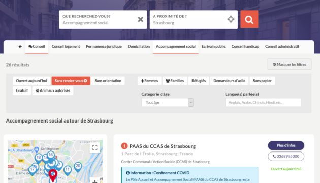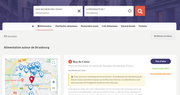 Le Soliguide fête bientôt sa première année d’existence à Strasbourg. Ce site internet rassemble toutes les adresses et contacts utiles pour les personnes dans le besoin : il permet de savoir où avoir accès à une douche, des paniers repas, un accompagnement à l’emploi ou un endroit pour se reposer au chaud.