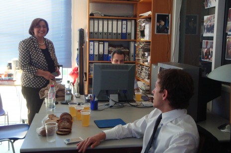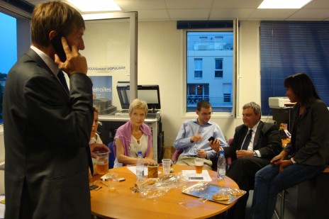 La fédération UMP du Bas-Rhin est aussi déserte que les bureaux de vote l’étaient aujourd’hui. Les quelques militants présents consultent les sites d’informations belges et plaisantent en commentant les premiers résultats.