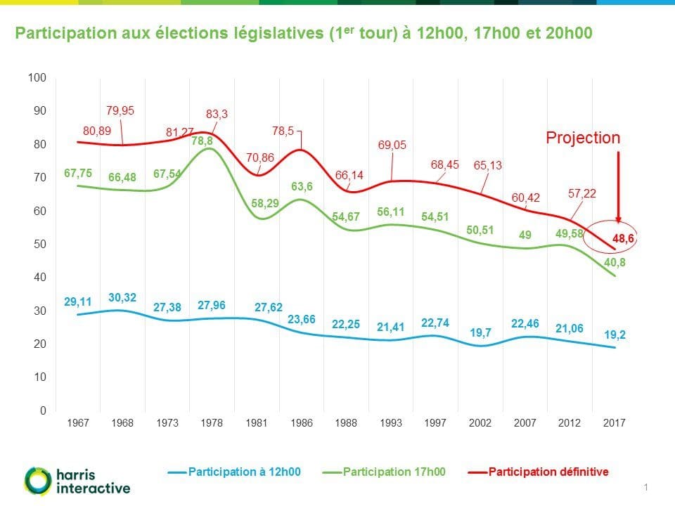 Selon Harris Interactive, la participation finale aux élections législatives en France pourrait atteindre un record d’abstention.