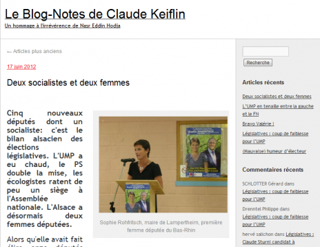 A LIRE SUR BLOG NOTES KEIFLIN L’ancien journaliste politique des DNA revient sur les résultats des élections législatives en Alsace sur son blog. Pour lui, cette élection montre que l’électorat de droite est quand même dépendant de l’effet d’entrainement, dont elle a bénéficié en 2007 avec l’élection de Nicolas Sarkozy. Ainsi, il note qu’en 2007, …