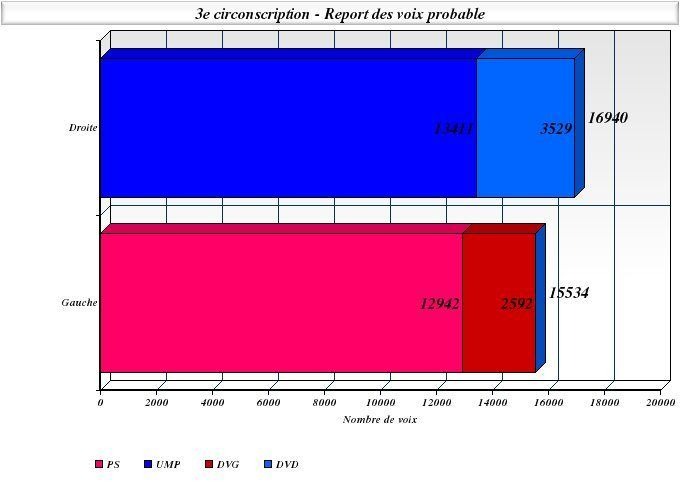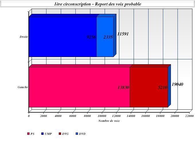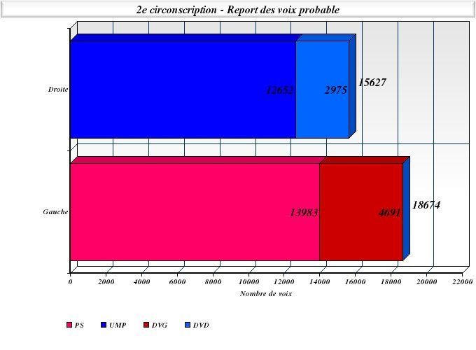 Alors nous aussi, nous avons sorti nos calculettes et nous nous livrons au jeu, risqué, des pronostics. Nous avons pris comme hypothèses une participation identique au premier tour et un report des voix total des écologistes, du front de gauche et de toute l’extrême gauche (LO, POI, PPLD…) sur le candidat socialiste. Nous avons aussi ajouté 10% des voix du FN. A droite, nous avons crédité le candidat en tête des voix du MoDem, des candidats Divers-Droite et de 40% des voix du Front National.